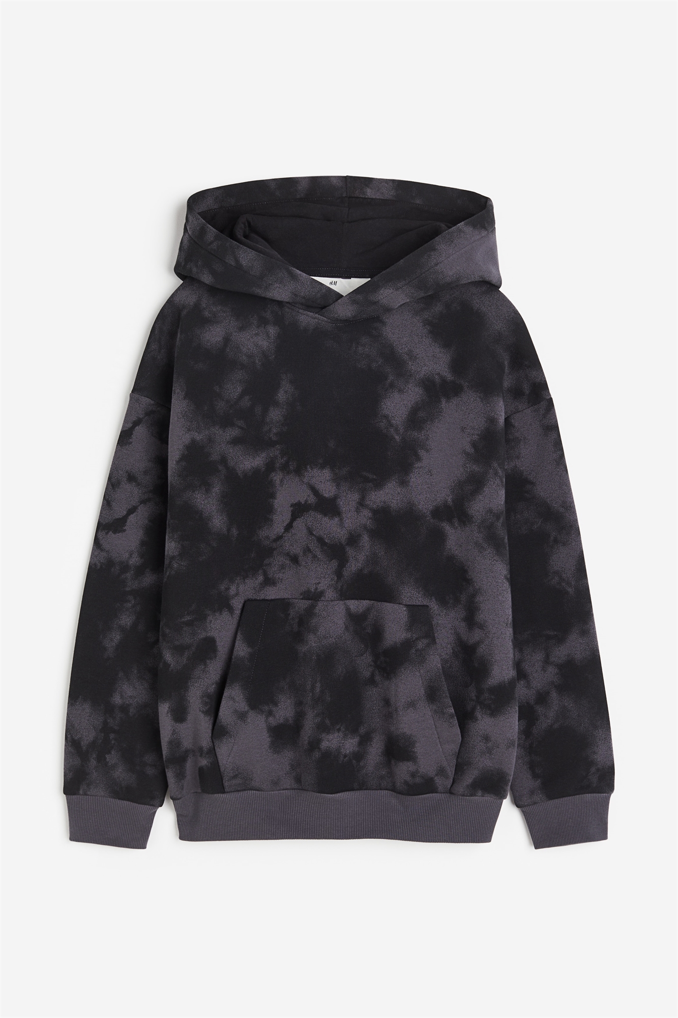 Толстовка свободного покроя из узорчатой ткани с мягкой начесом внутри. Капюшон на подкладке из джерси, низко опущенные плечи, длинные рукава и карман-кенгуру. Манжеты и подол в рубчик.