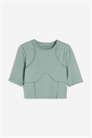 Обрезанный спортивный топ из функциональной ткани DryMove™, которая отводит влагу от кожи, обеспечивая комфортную сухость во время движения. Облегающий крой с круглым вырезом, короткими рукавами и открытым разрезом сзади. Однотонные швы "флэтлок" создают привлекательные линии.