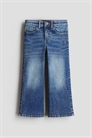Джинсы из суперстрейчевого денима для максимальной эластичности с зауженной посадкой по бедрам и ляжкам. Регулируемая резинка на талии, ширинка на молнии с пуговицей и широкие штанины.