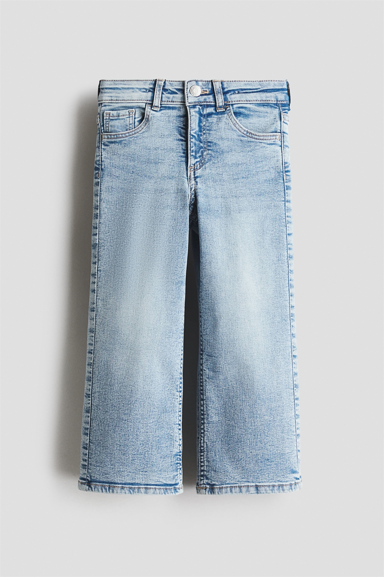 Джинсы из суперстрейчевого денима для максимальной эластичности с зауженной посадкой по бедрам и ляжкам. Регулируемая резинка на талии, ширинка на молнии с пуговицей и широкие штанины.