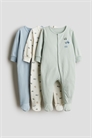 Спальные костюмы из супермягкого хлопкового джерси с застежками на кнопках спереди и вдоль одной ножки для удобства переодевания. Длинные рукава с манжетами в рубчик и длинные ножки с полными ступнями с противоскользящими протекторами (кроме размеров 0-6M).