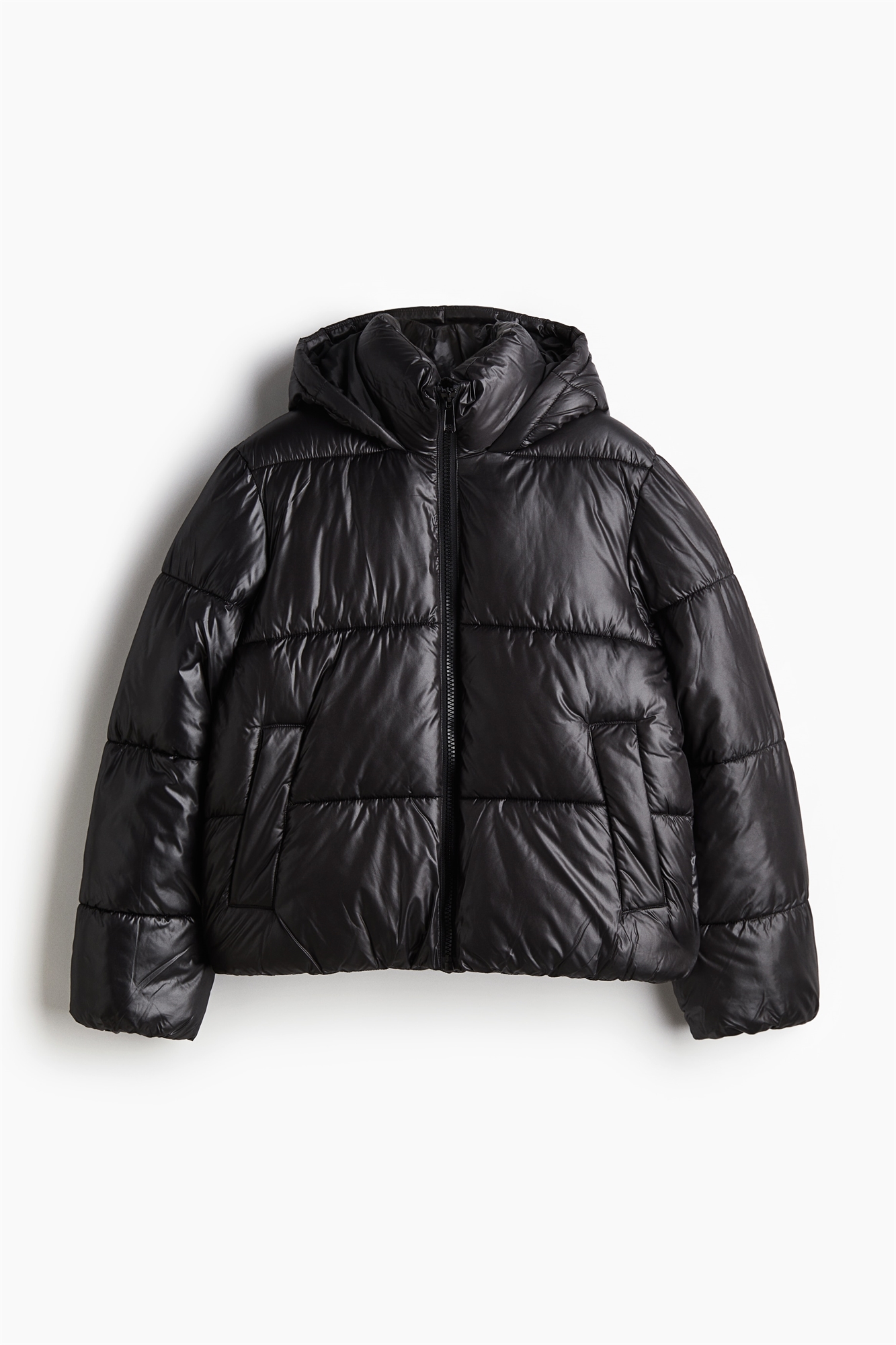 Пуховая куртка свободного покроя со стеганым переплетением. Капюшон, воротник-стойка и застежка-молния спереди с защитой подбородка от натирания. Слегка спущенные плечи, длинные рукава и втачные передние карманы. Эластичная резинка на манжетах и подоле. На подкладке.