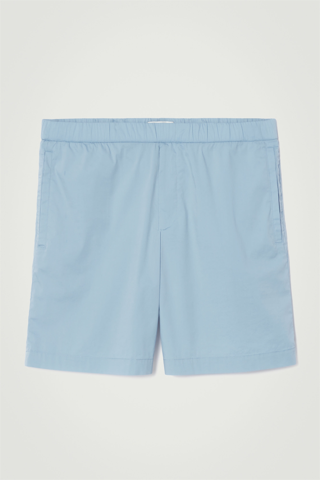 Эти шорты станут стильным дополнением к вашему летнему гардеробу. Пара выполнена из дышащей хлопковой смеси в универсальном небесно-голубом цвете и имеет удобный эластичный пояс. Прорезной карман сзади придает шортам элегантность. Регулярный крой Боковые прорезные карманы Лучшая альтернатива обычному полиэстеру: переработанный полиэстер изготавливается из отходов до и после переработки Верхний материал: 71 % хлопка, 25 % переработанного полиэстера, 4 % эластана. Детали исключены/Машинная стирка Внутренняя длина штанины в размере M = 18 см/Модель носит размер M