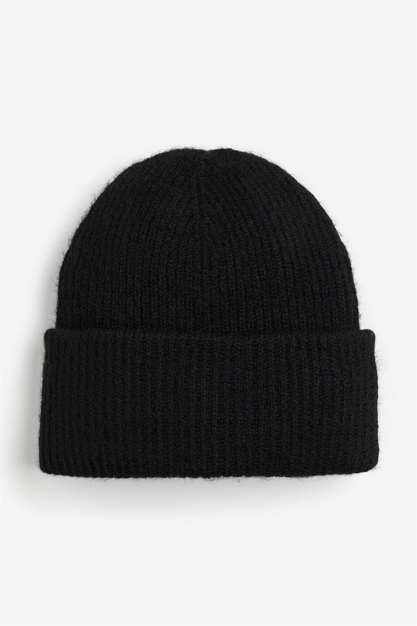 Шапка из мягкого трикотажа в рубчик с отворотом.