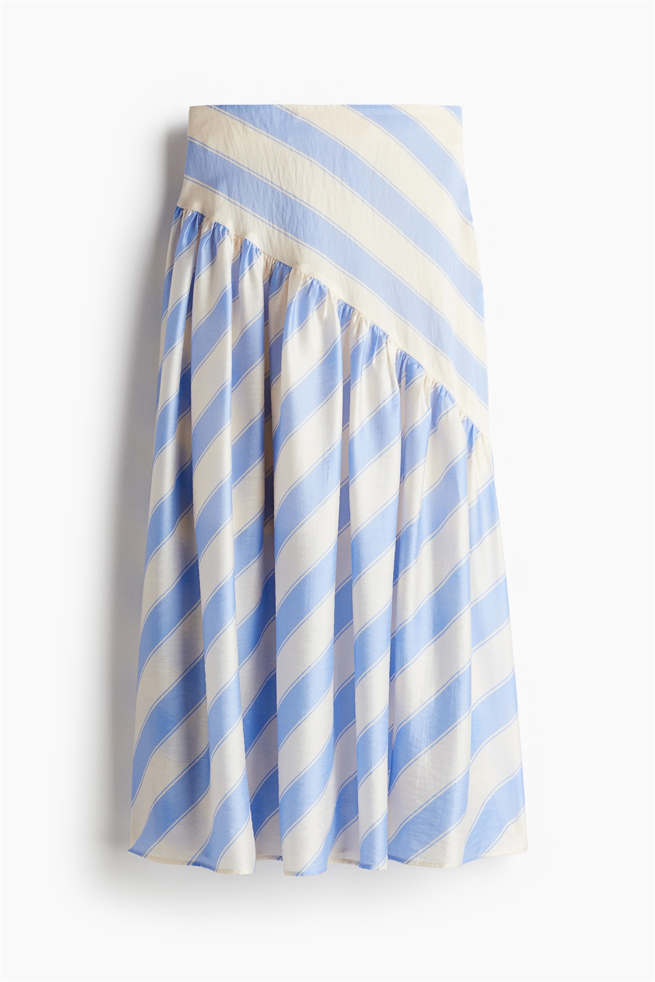 Юбка длиной до щиколоток из тканого материала из смеси лиоцелла. Потайная застежка на молнию и пуговицу с одной стороны на талии. Диагональный шов на бедре со складками, создающими эффект драпировки на подоле. Подкладка из хлопкового переплетения.
