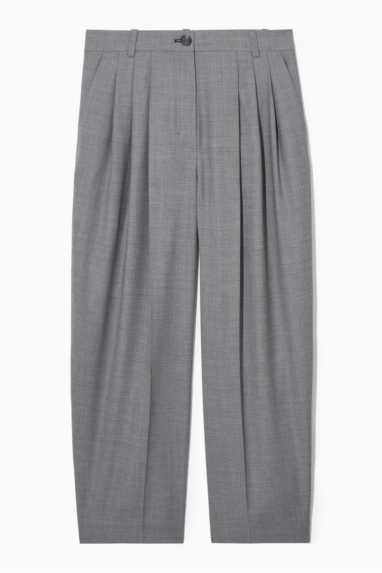 Скульптурные силуэты являются основой наших коллекций готовой одежды COS. Эти современные брюки сшиты из 100% шерстяной ткани RWS и имеют преувеличенную форму бочки и трио передних складок на каждой штанине для придания дополнительной подвижности и формы. Все наши брюки сшиты по индивидуальному заказу и оснащены регулируемой планкой на поясе, чтобы вы могли добиться идеальной посадки. Регулярный крой, расклешенный подол Застежка на пуговицах и молнии, косые карманы Сертифицированы в соответствии со стандартом ответственной шерсти для защиты благополучия овец и окружающей среды Оболочка: 100% шерсть RWS. Без учета отделки / Сухая чистка Внутренняя длина штанины размера EU 36 составляет 63 см / Модель носит размер EU 36