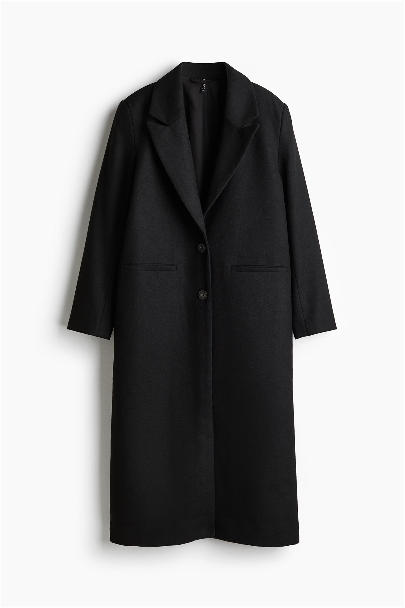 Однобортное пальто длиной до щиколоток из мягкой войлочной ткани с широкими отворотами и пуговицами спереди. Нагрудный карман, прорезные передние карманы и один задний клапан. На подкладке.
