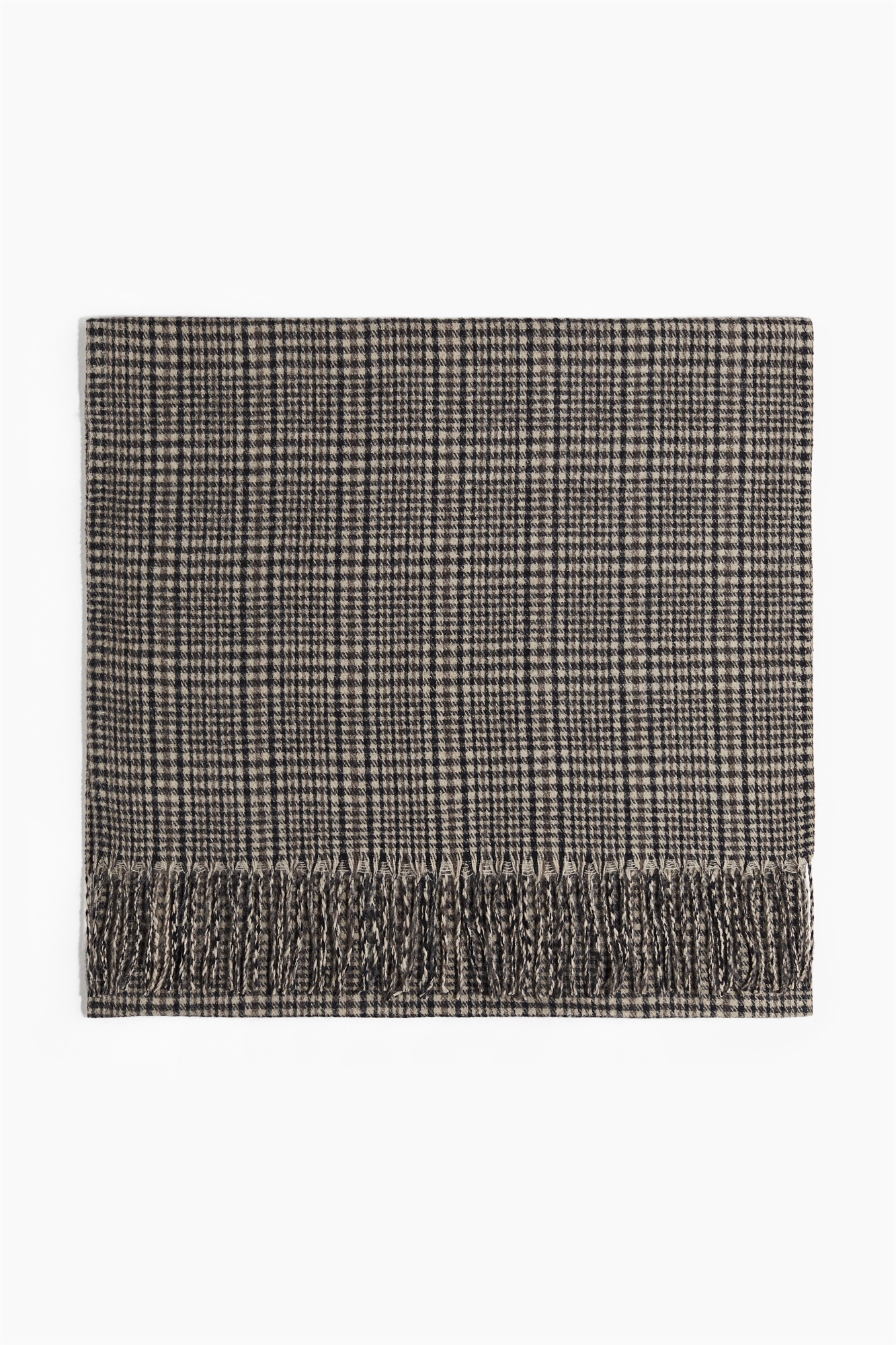 Шарф из тканого материала с бахромой по коротким сторонам.