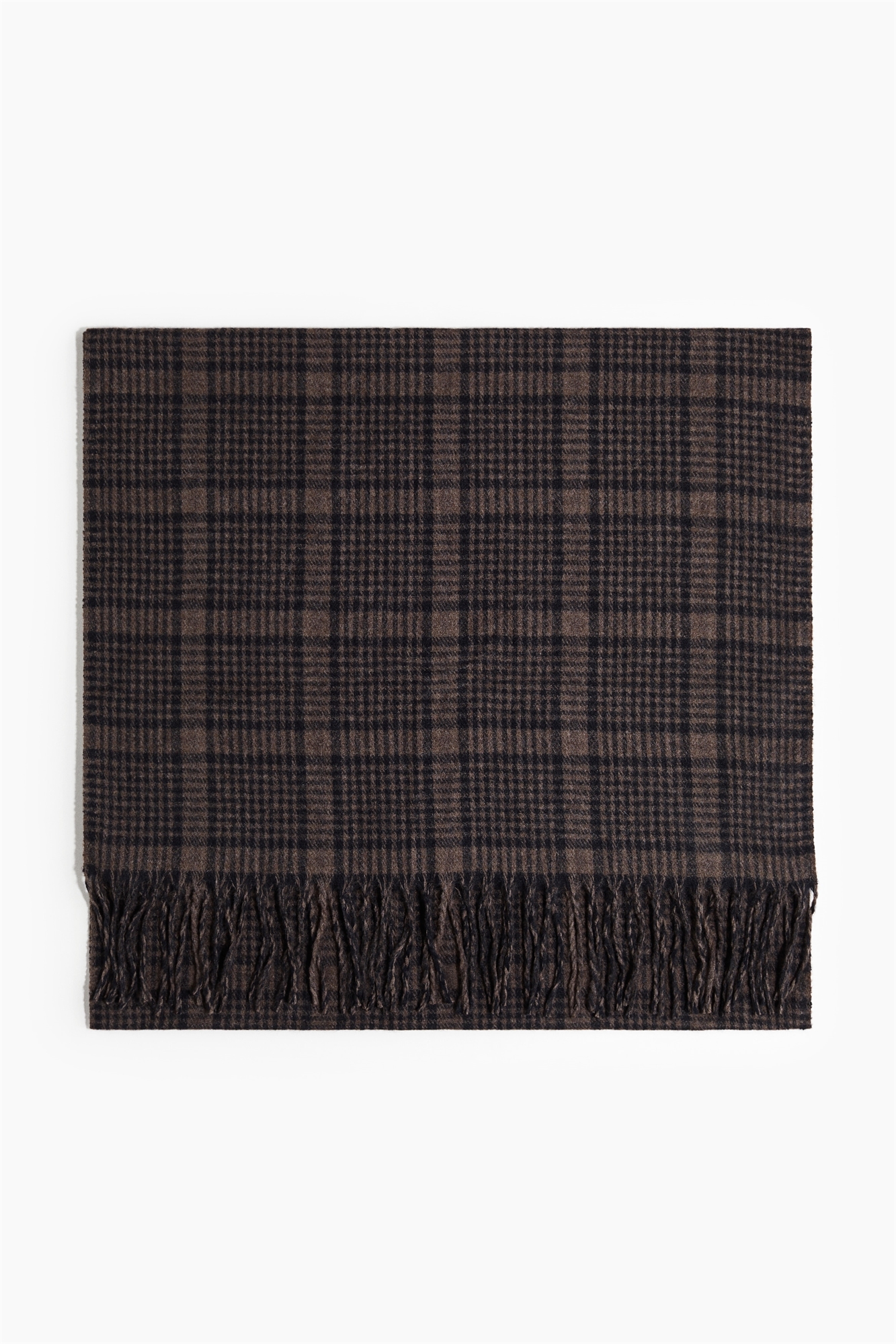 Шарф из тканого материала с бахромой по коротким сторонам.