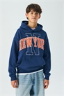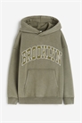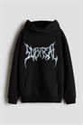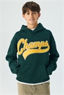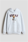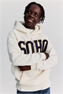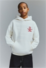 Толстовка свободного кроя из толстовочной ткани с мягкой начесом внутри. Двухслойный капюшон, спущенные плечи, длинные рукава и карман-кенгуру. Манжеты и подол в рубчик.