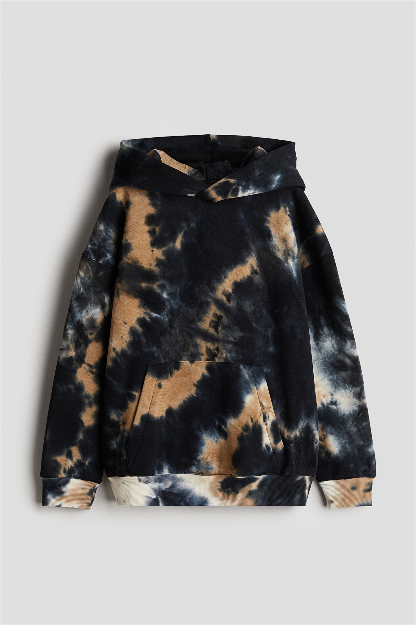 Толстовка свободного кроя из толстовочной ткани с мягкой начесом внутри. Двухслойный капюшон, спущенные плечи, длинные рукава и карман-кенгуру. Манжеты и подол в рубчик.
