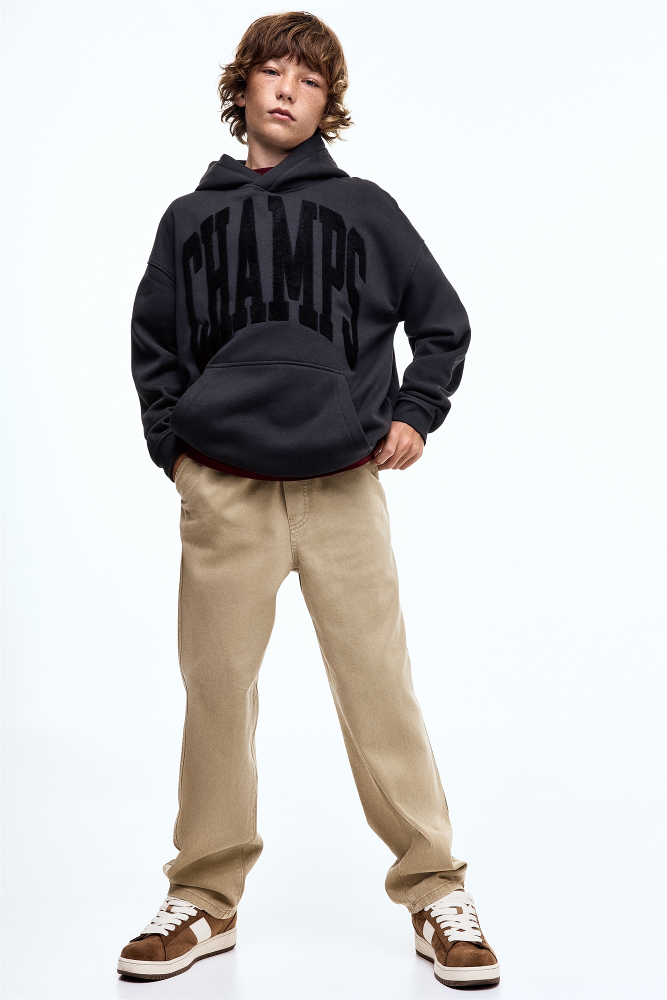 Толстовка свободного кроя из толстовочной ткани с мягкой начесом внутри. Двухслойный капюшон, спущенные плечи, длинные рукава и карман-кенгуру. Манжеты и подол в рубчик.