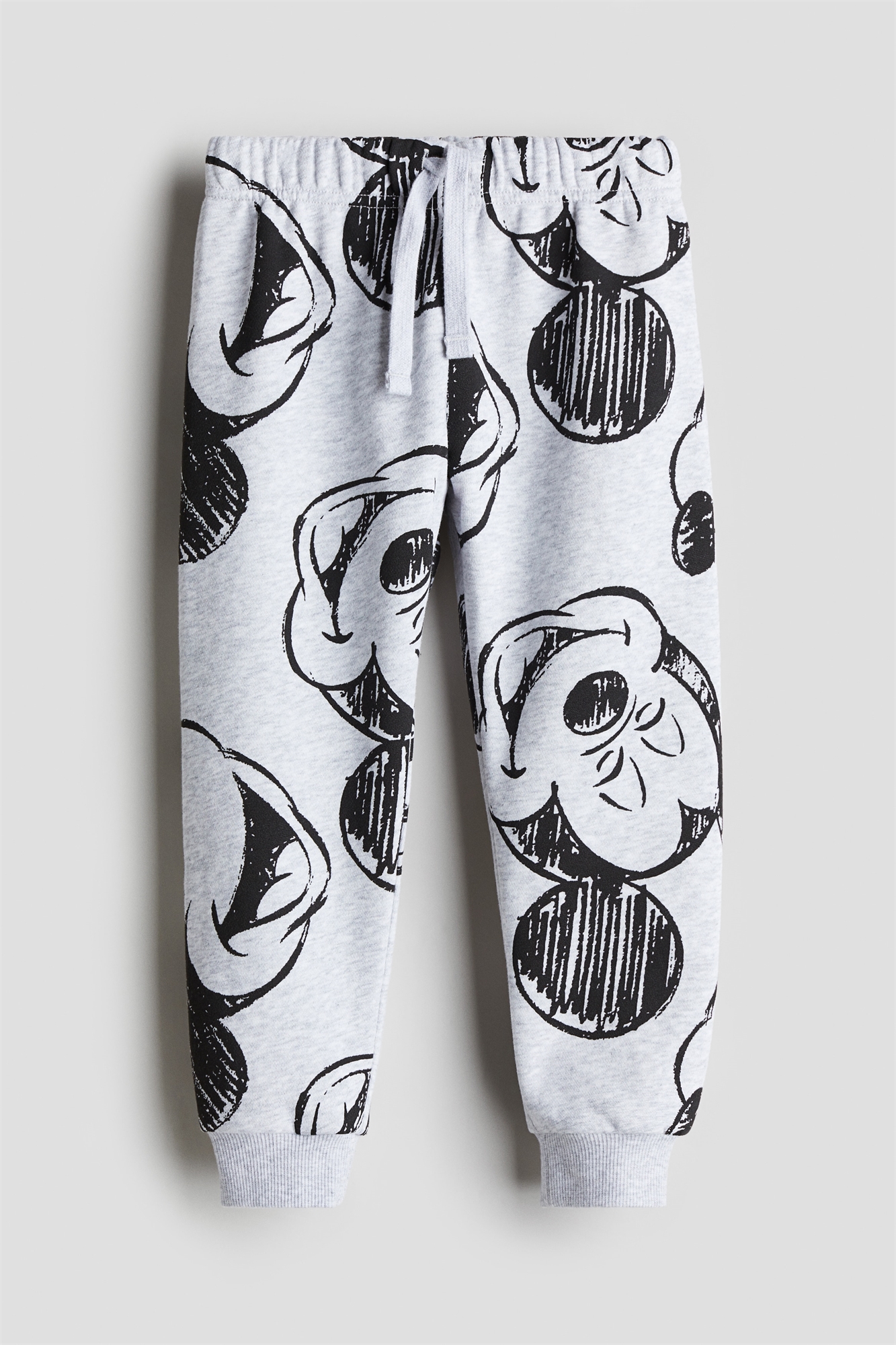 Джоггеры из принтованной толстовочной ткани с мягкой начесанной внутренней стороной. Эластичный пояс с утягивающим шнурком и тесемки по краям.