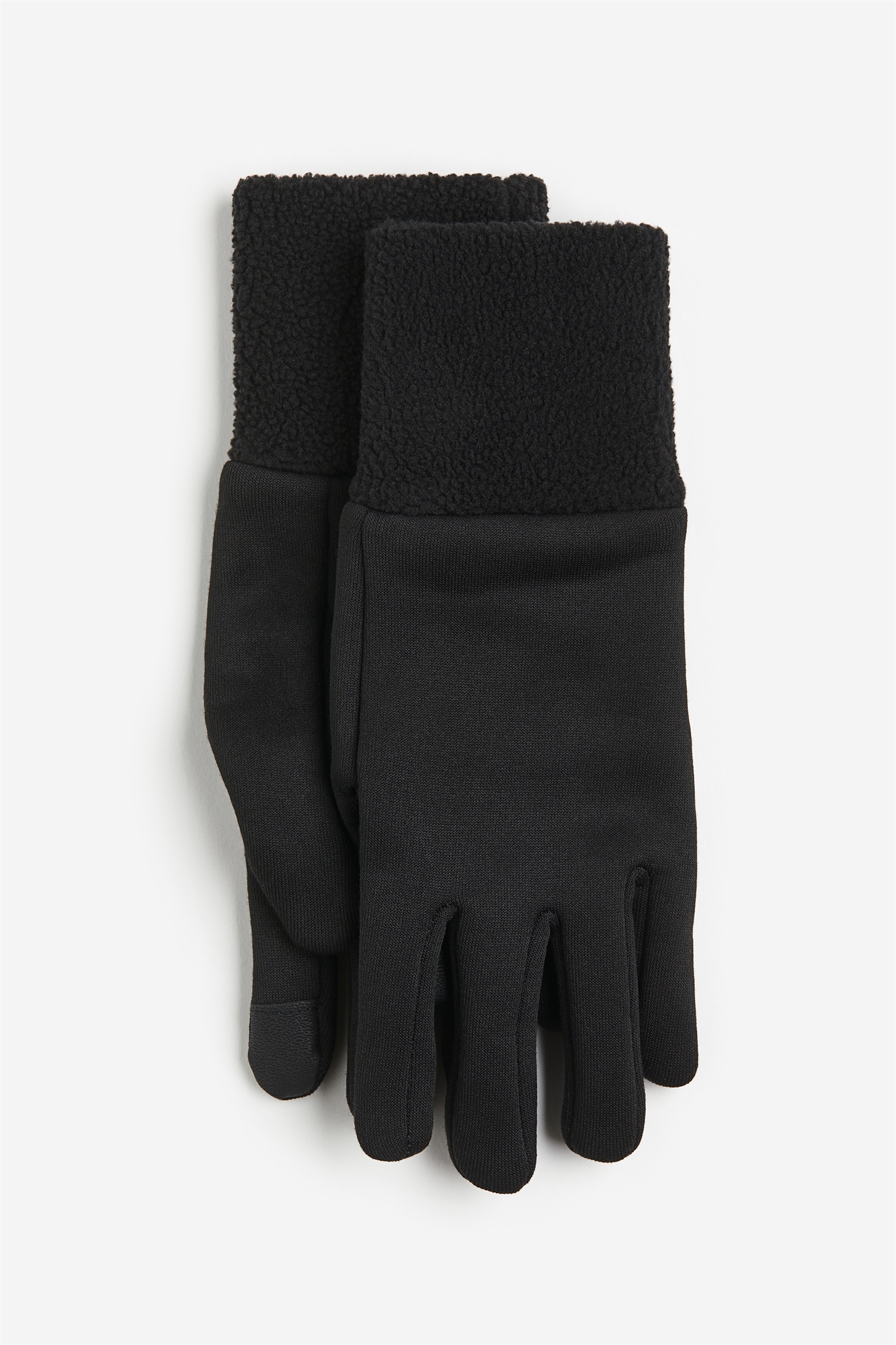 Перчатки из слегка тянущейся ткани. Ладони с силиконовым принтом для надежного захвата, а большой и указательный пальцы - из материала, совместимого с сенсорными экранами. Двухслойная плюшевая отделка на запястьях.