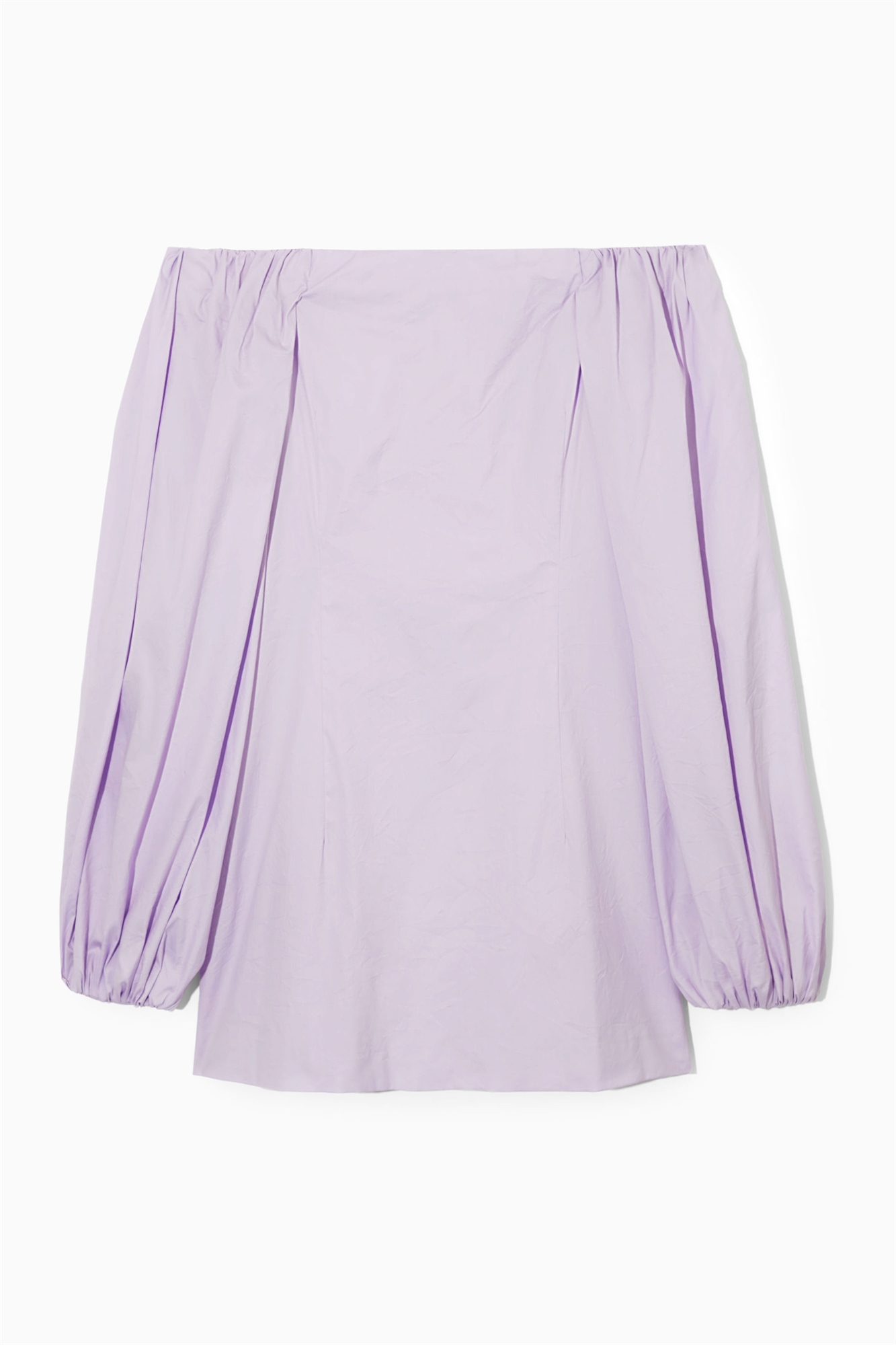 Это мини-платье с плечами - отличный вариант для летних мероприятий. Оно сшито из дышащей хлопковой смеси с тактильным ворсом и нежно-фиолетовым оттенком. Приталенный лиф с вытачками подчеркивает фигуру, а рукава-баллоны создают объемный силуэт. Дополните его туфлями на каблуках и одной из наших фирменных сумок. - Узкий крой - Потайная застежка-молния - Внутренняя резинка для предотвращения скольжения 68% хлопка, 28% полиамида (нейлон), 4% эластана, подкладка: 100% хлопок / Машинная стирка Длина по спинке размера EU 36 составляет 65,5 см.