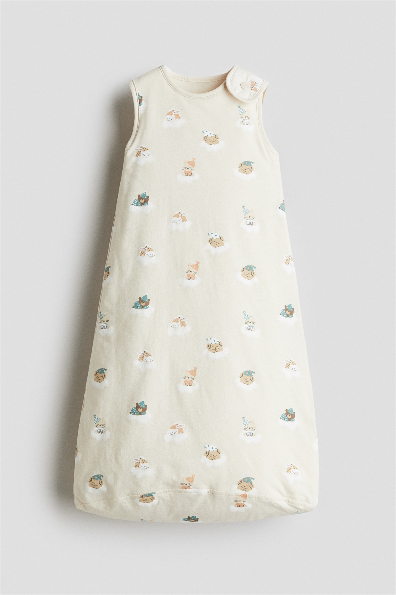 Мягкий мешок для сна из хлопкового джерси с набивным рисунком, застежка-молния на одном плече и молния с одной стороны. Подкладка из джерси. Спальный мешок предназначен только для использования в помещении. Степень защиты 2,5.