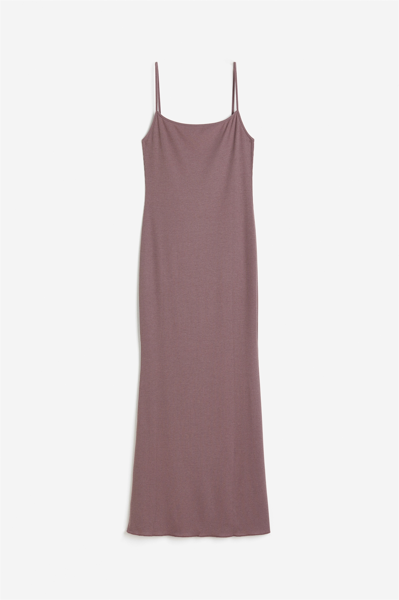 Длинное приталенное платье из мягкого ребристого джерси из смеси вискозы. Нежно драпированный вырез и узкие бретели.