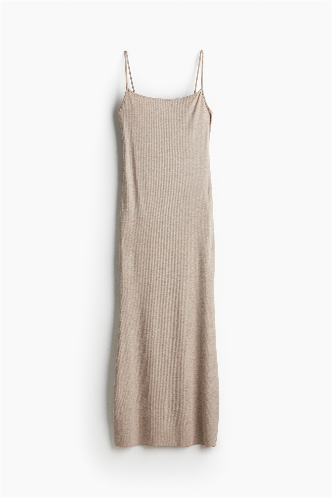 Длинное приталенное платье из мягкого ребристого джерси из смеси вискозы. Нежно драпированный вырез и узкие бретели.