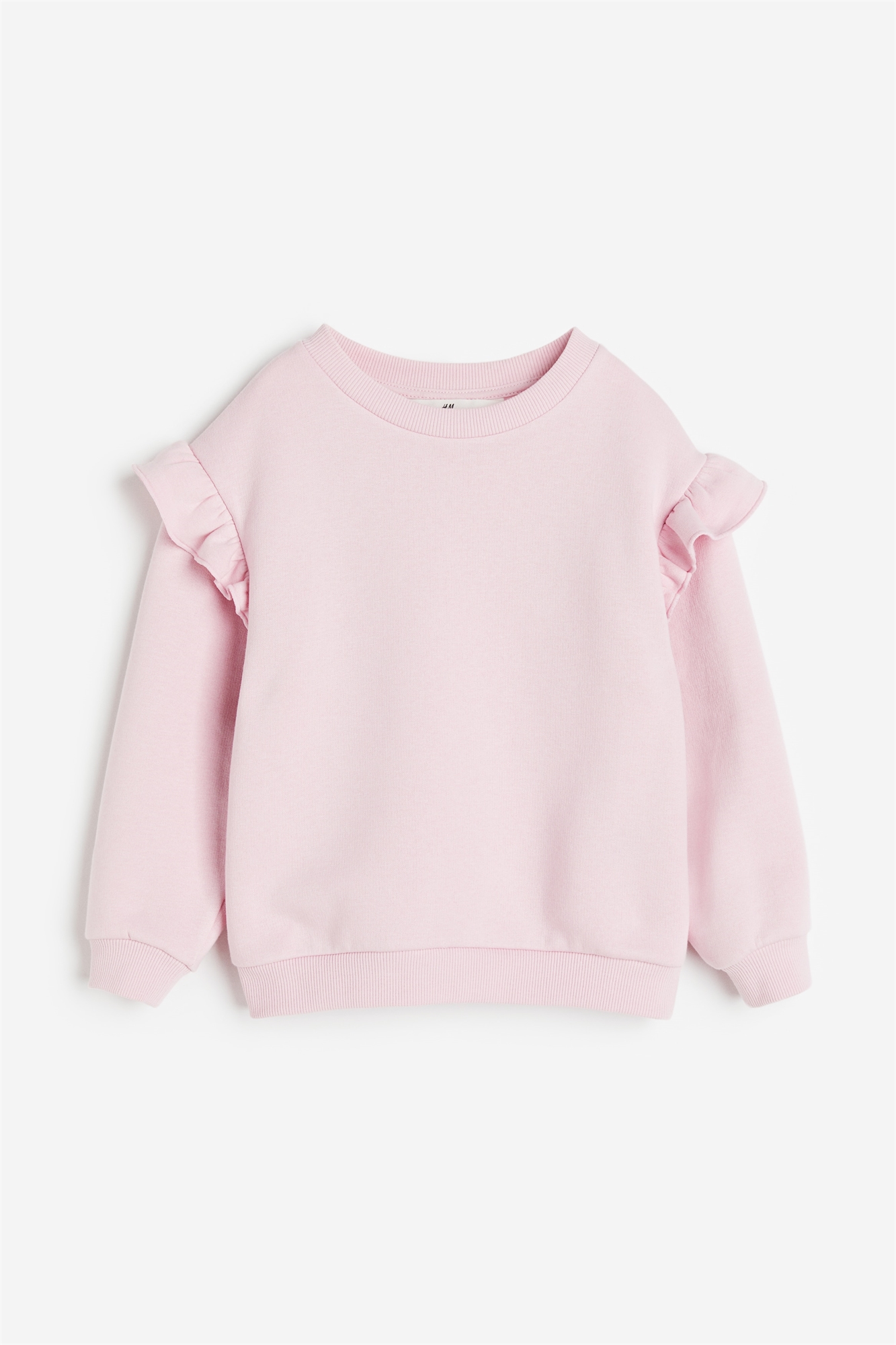 Топ с длинными рукавами из толстовочной ткани с мягкой начесом внутри. Круглый вырез с ребристой отделкой и спущенные плечи с ребристой отделкой. Ребристые манжеты и подол.