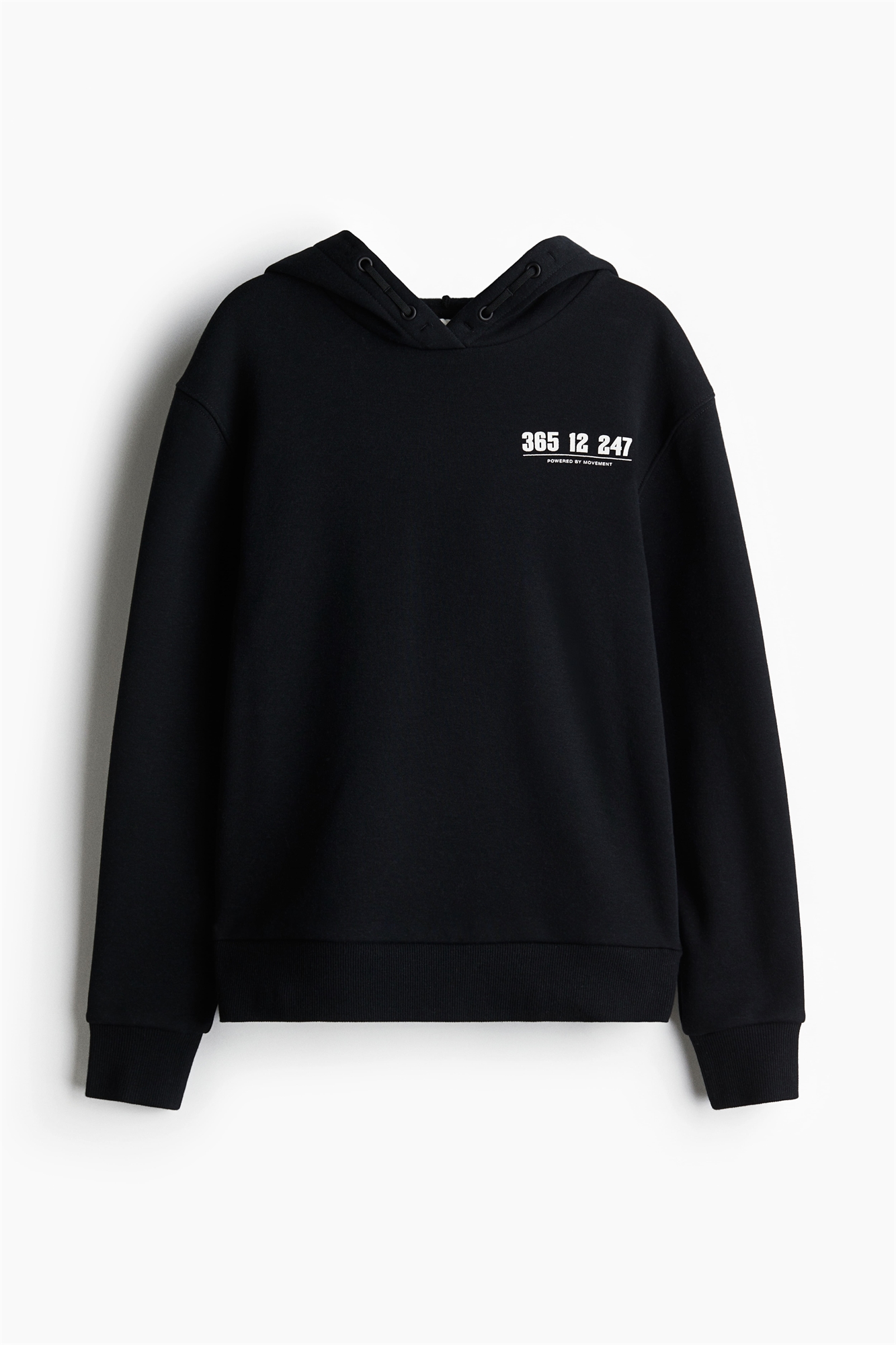 Спортивная толстовка Regular-Fit из функциональной ткани DryMove™, которая отводит влагу от кожи, обеспечивая комфортную сухость во время движения. Обтягивающий капюшон с декоративным шнурком, текстовый мотив спереди, слегка спущенные плечи и длинные рукава. Манжеты и подол в рубчик.