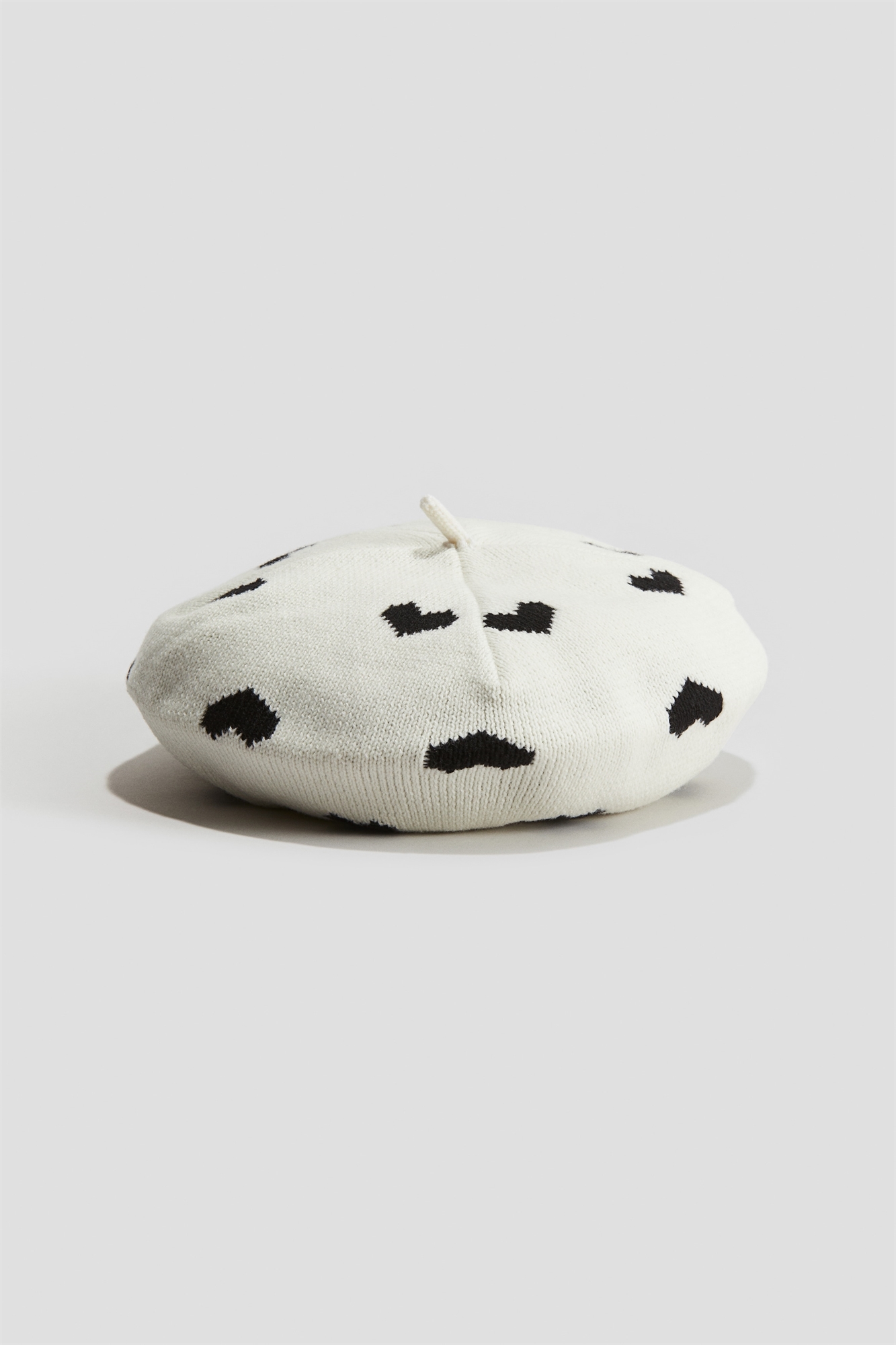 Берет из мягкого трикотажа с пушистым помпоном на макушке и узкой тесьмой по подолу.
