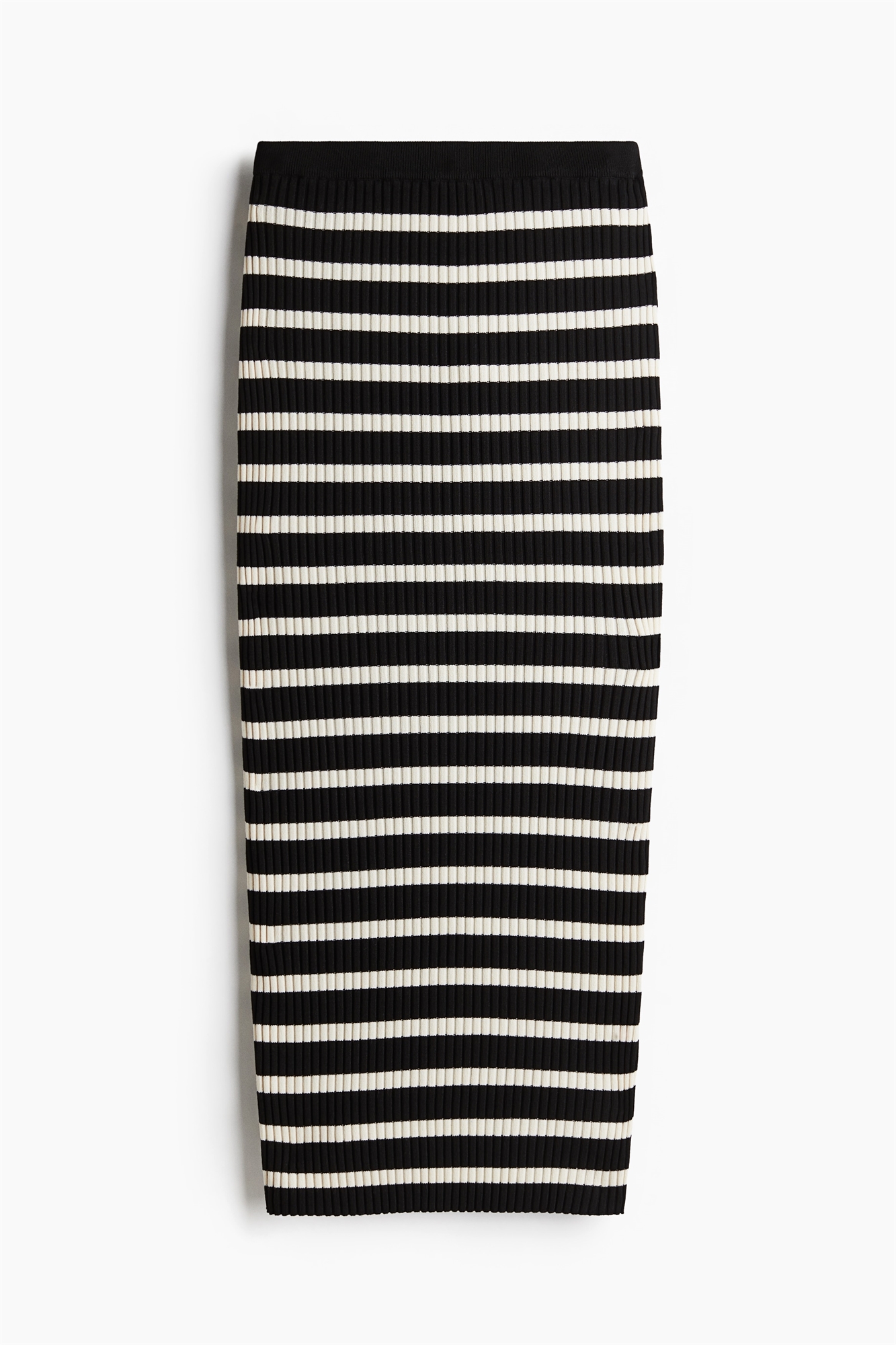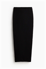 Приталенная юбка длиной до колен из трикотажа в рубчик. Высокая талия с утяжкой и прямой подол.