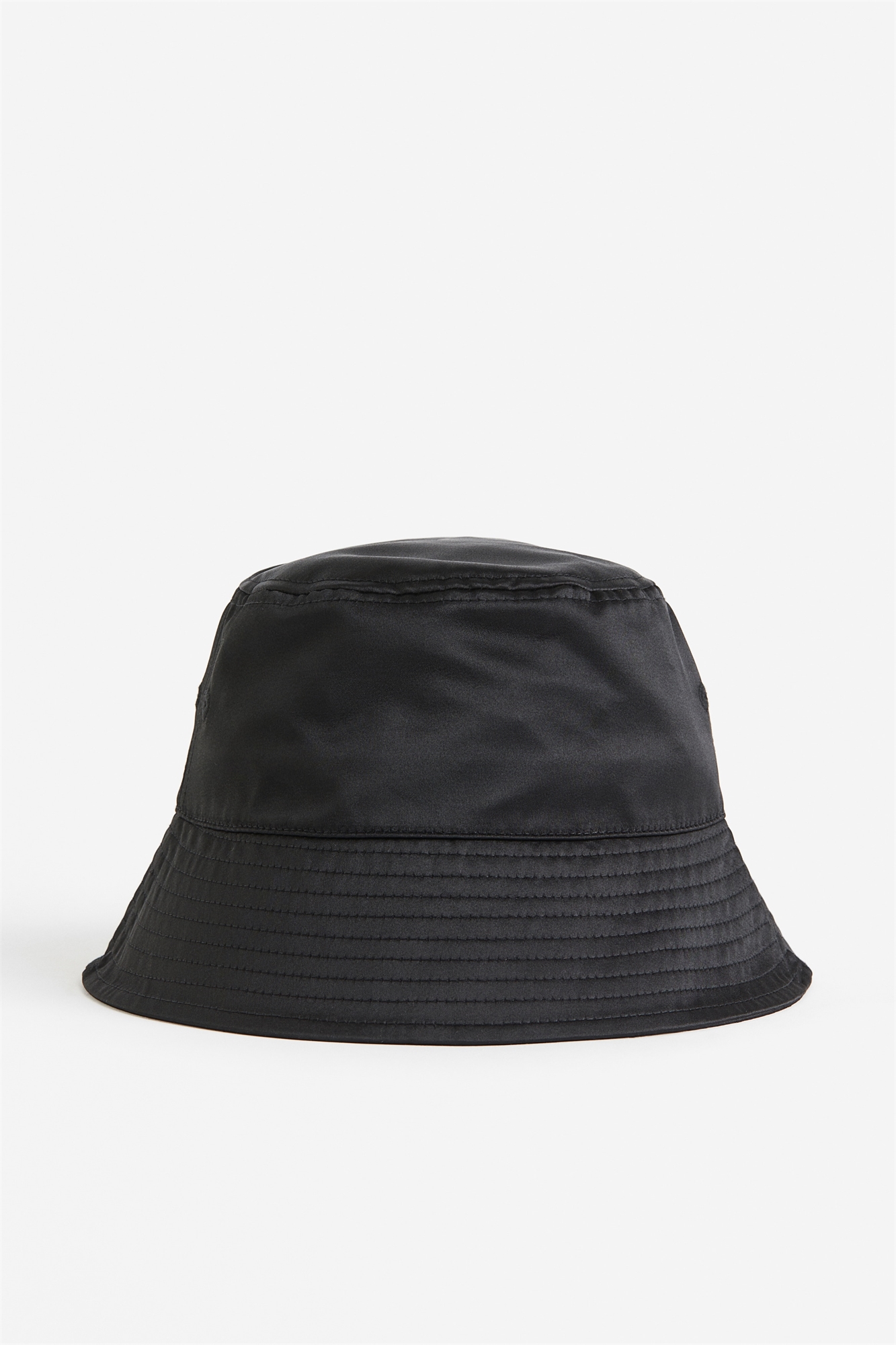 Атласная шляпа-ведро с вышитыми люверсами и хлопковой попоной. Ширина околыша 7 см.