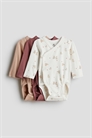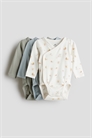 Боди с длинными рукавами из супермягкого хлопкового джерси. Заворачивающийся перед с кнопками по бокам и в промежности для удобства переодевания. Швы вокруг ножек для более удобного и плотного прилегания подгузника.