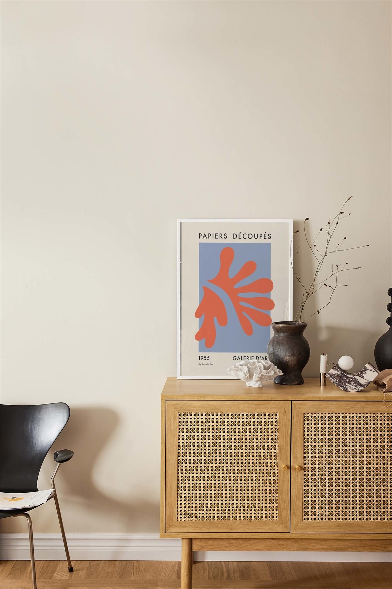 Графическая иллюстрация оранжевой формы на фиолетовом и бежевом фоне. Эти смелые цветные неестественные формы вдохновлены авангардным художественным направлением фовизм, процветавшим во Франции в начале XX века.