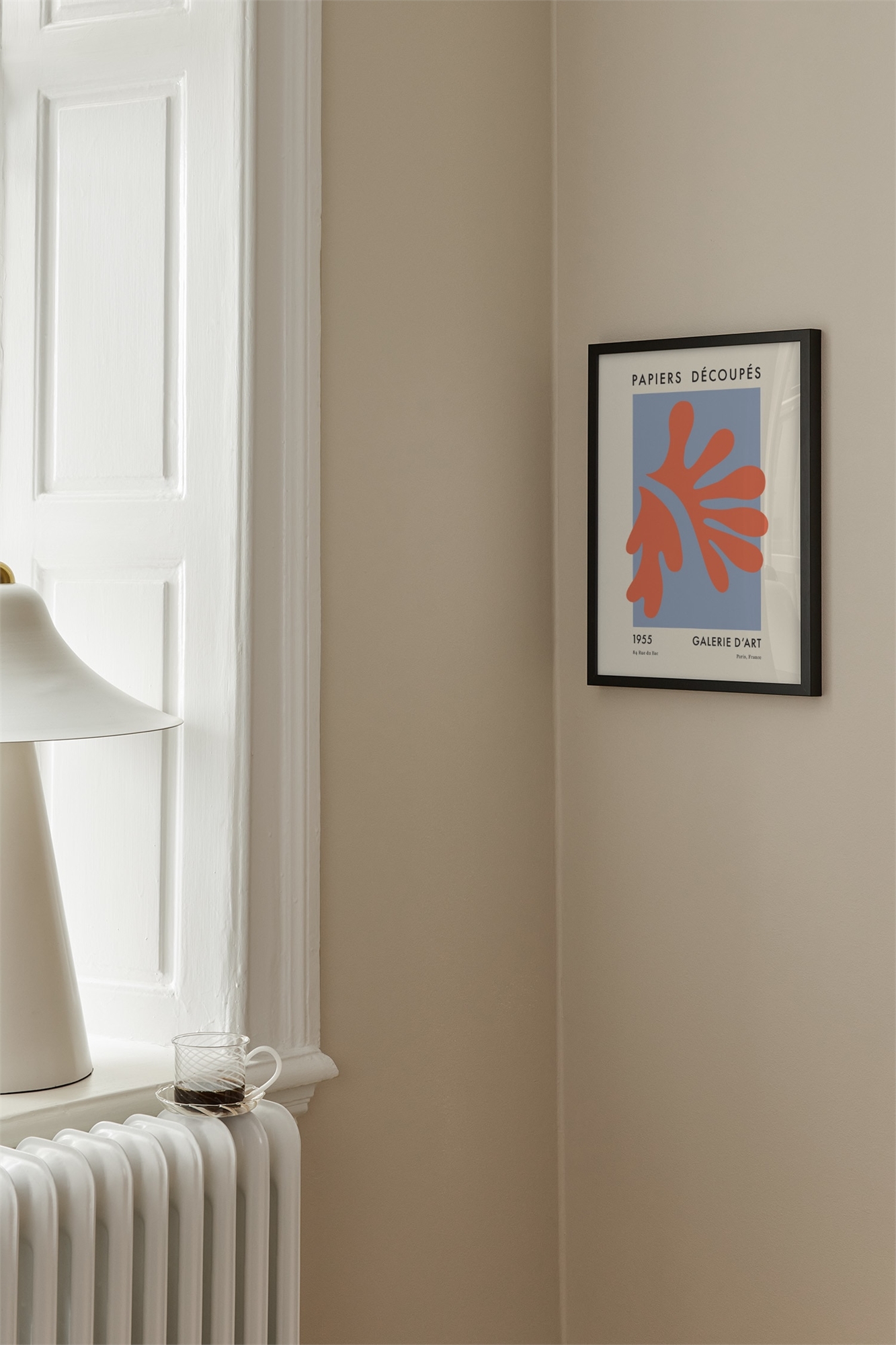 Графическая иллюстрация оранжевой формы на фиолетовом и бежевом фоне. Эти смелые цветные неестественные формы вдохновлены авангардным художественным направлением фовизм, которое процветало во Франции в начале XX века.