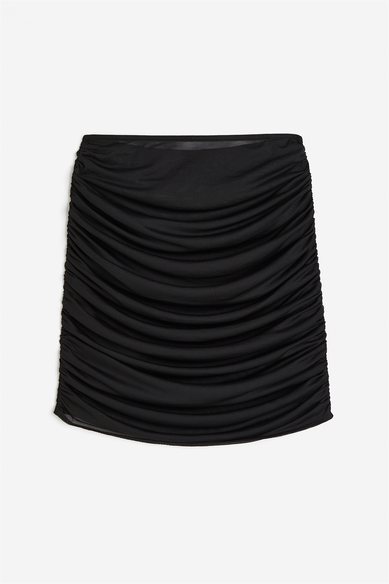 Короткая юбка из сетки с узким эластичным поясом и сборками по боковым швам для эффектной драпировки. Без подкладки.