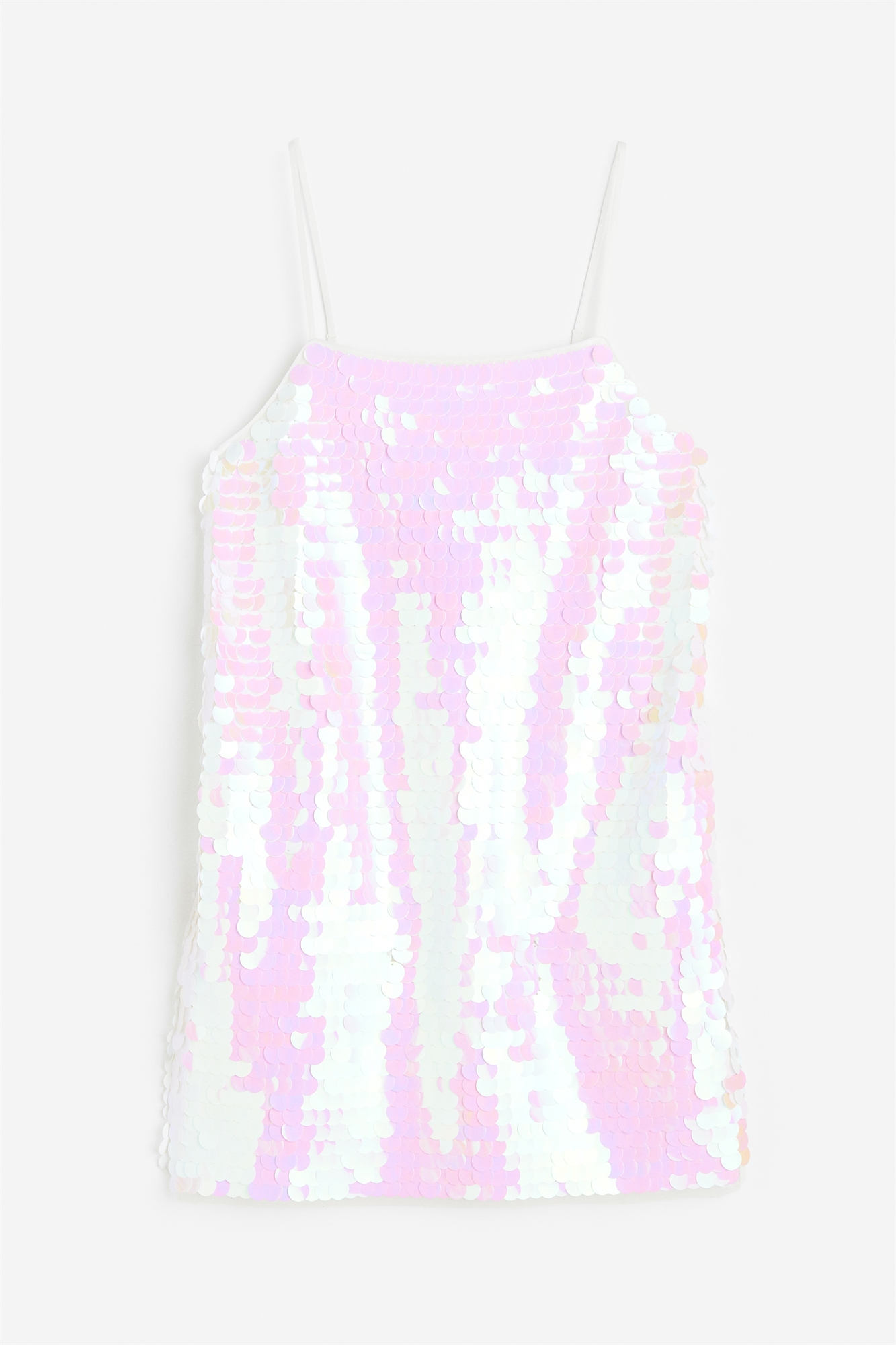 Короткое платье из сетки с блестящими пайетками. Прямой вырез и регулируемые бретели-спагетти. Подкладка из джерси.