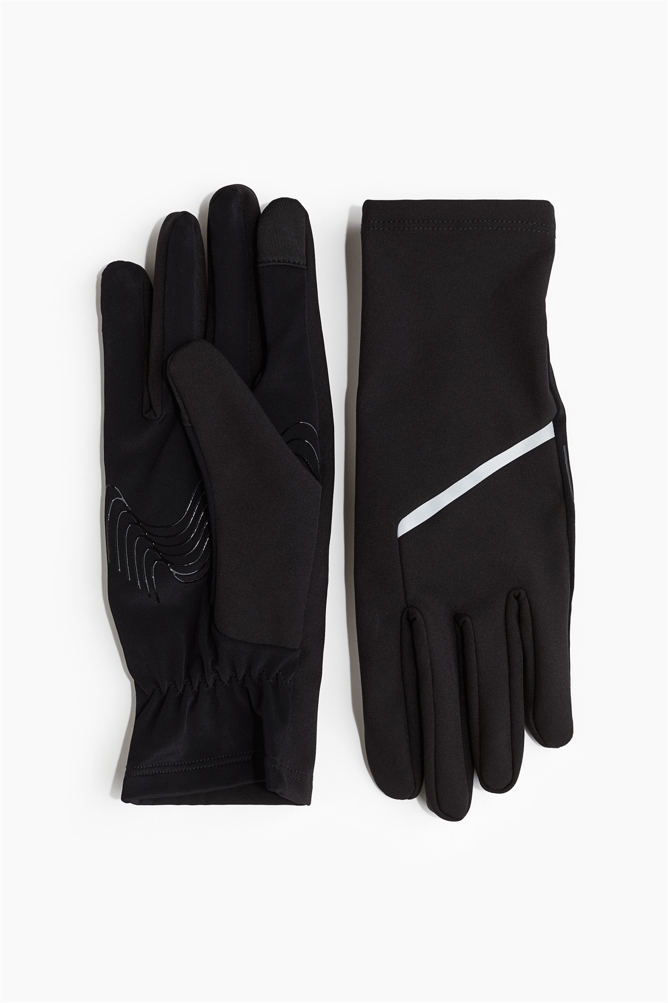 Перчатки для бега из функционального материала DryMove™, который отводит влагу от кожи, обеспечивая сухость и комфорт во время движения. Светоотражающие детали на тыльной стороне руки и ладони с силиконовым принтом для надежного захвата. Кончики большого и указательного пальцев выполнены из материала, дружественного к сенсорному экрану.