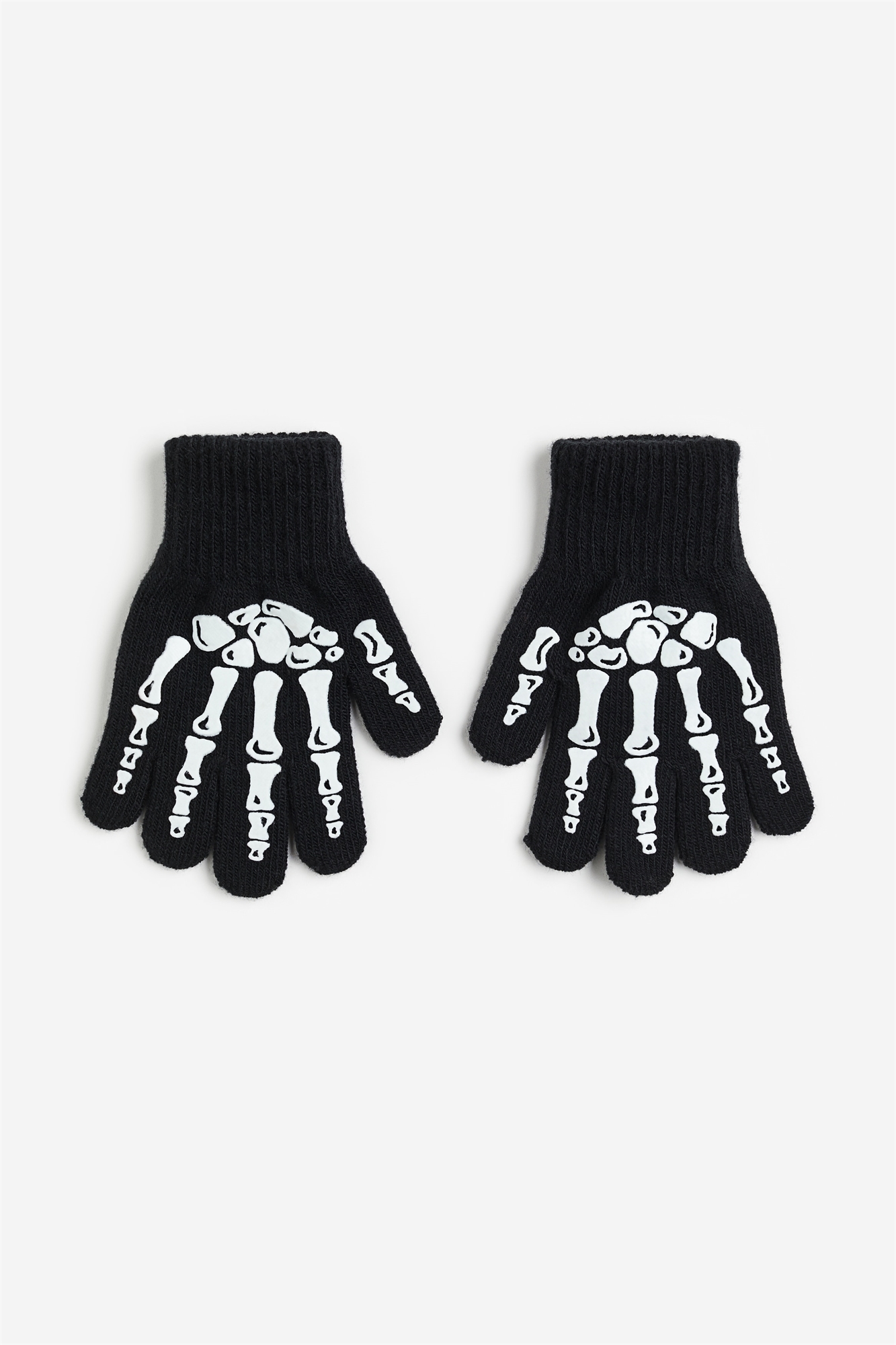 Перчатки из мягкого тонкого трикотажа с принтом и ребристыми манжетами.
