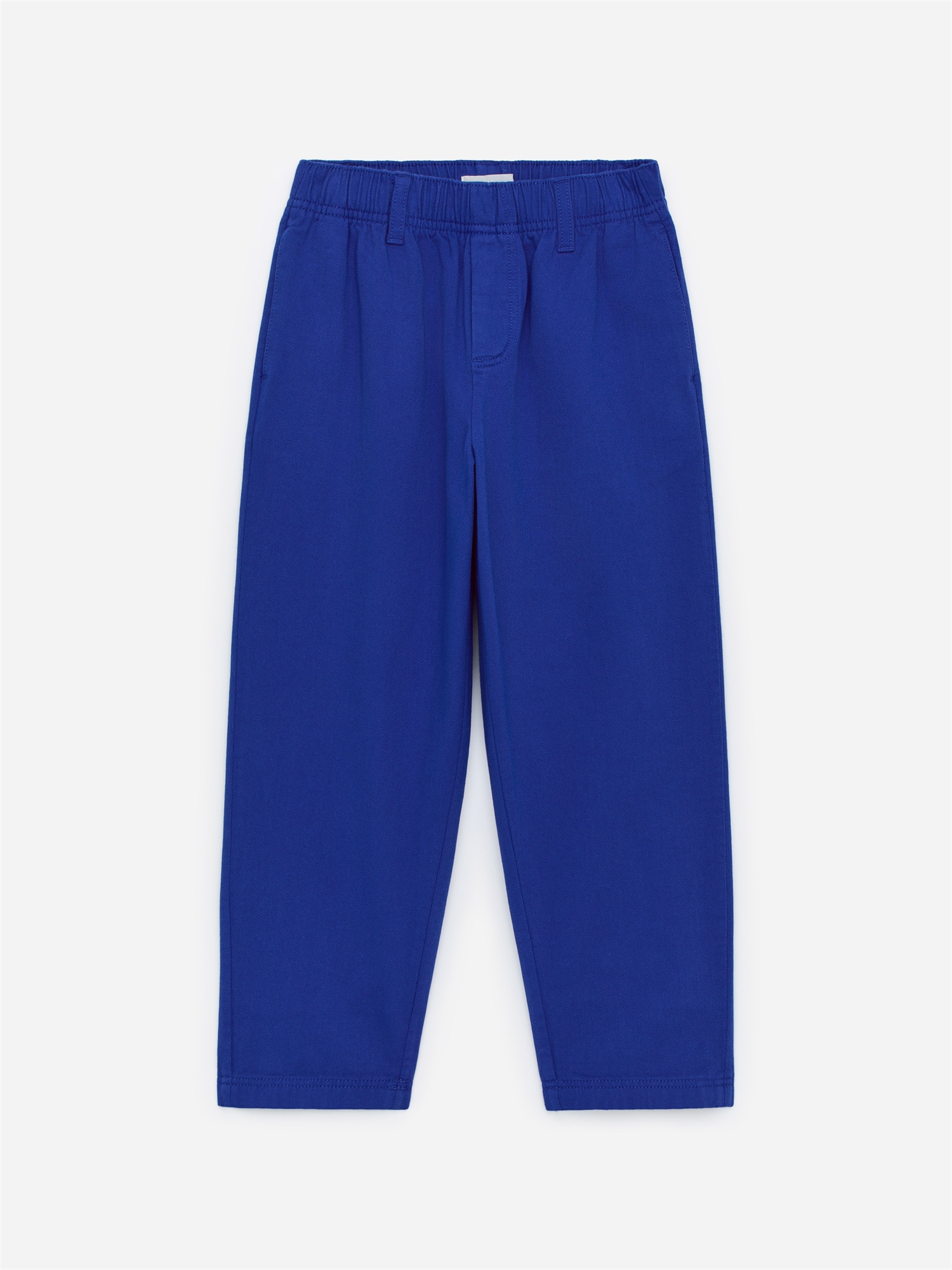 Чиносы из хлопковой саржи. Зауженный крой, регулируемый эластичный пояс, петли для ремня и фальшивая ширинка. Карманы спереди и один прорезной карман сзади.