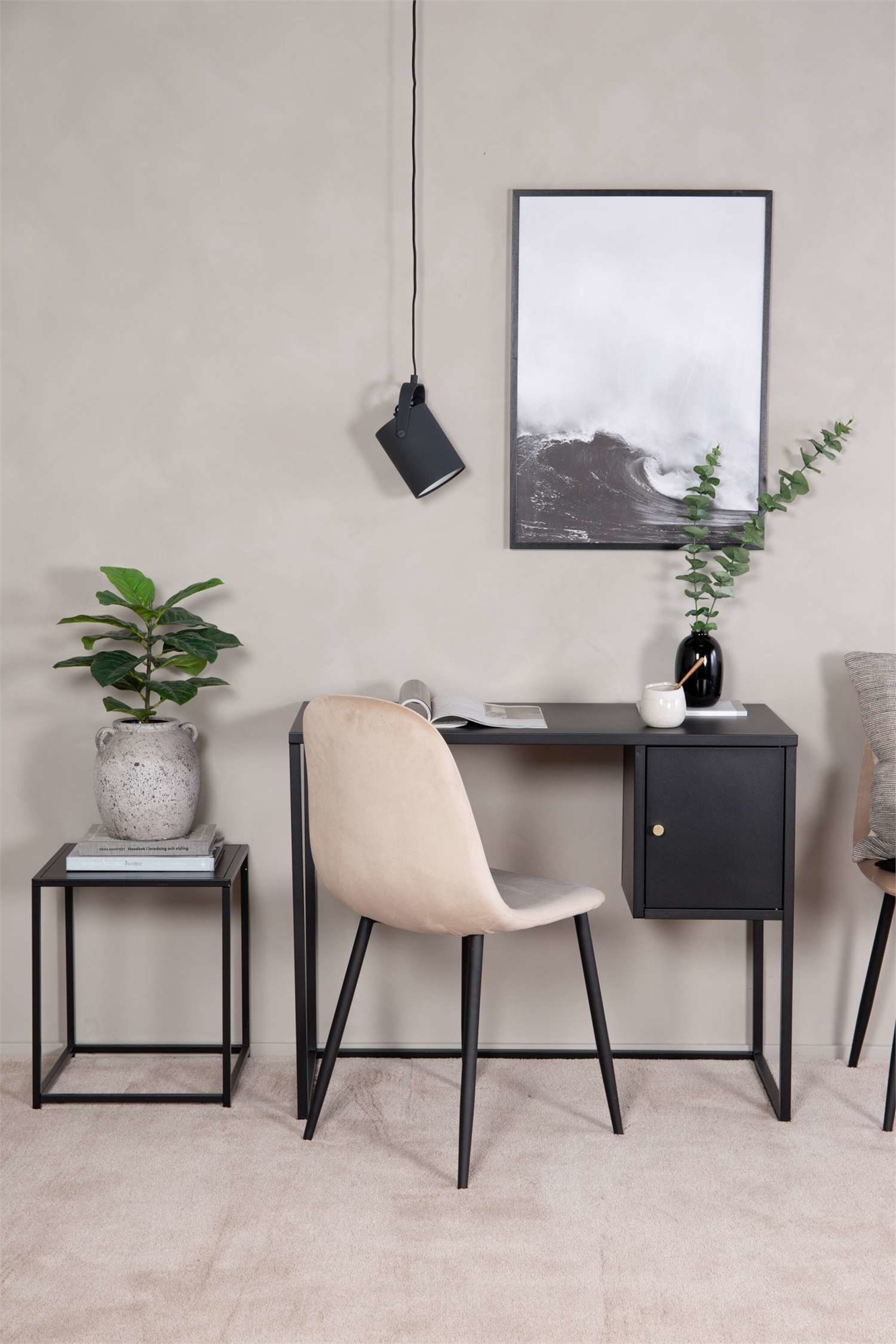 Bakal, простой письменный стол в современном индустриальном дизайне, с интегрированной рамой и небольшой квадратной тумбой. С небольшой дверцей, за которой скрыто место для хранения, и рельефной поверхностью из стали с порошковым покрытием в правом углу. На дверце имеется ручка цвета латуни. Размеры: Высота: 75 см, длина: 95 см, ширина: 45 см.