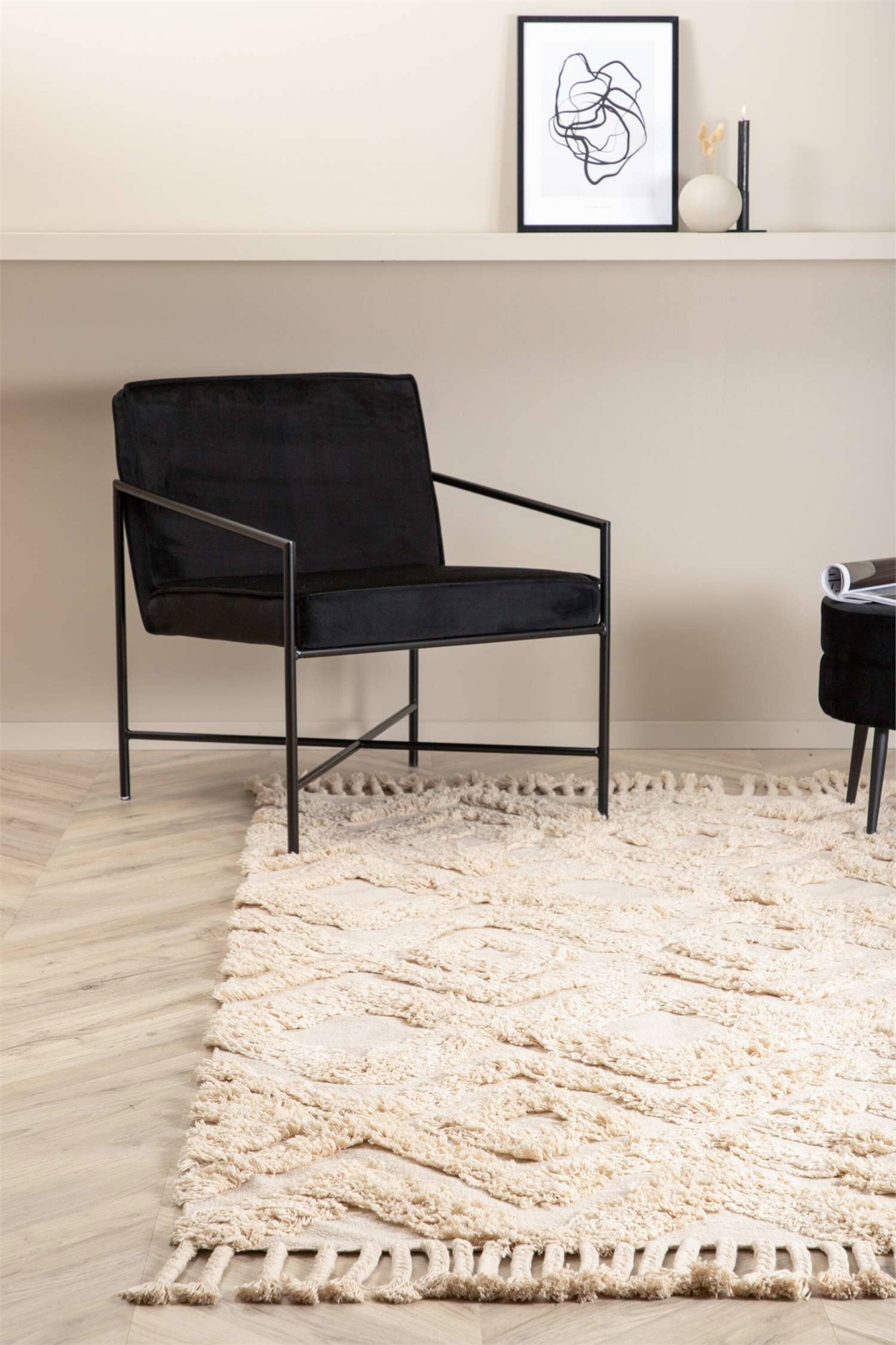 Хилма - хлопковый ковер натурального оттенка. Ковер украшен зигзагообразным узором и бахромой, причем короткая сторона привлекает внимание. Hilma - это модный прямоугольный ковер, который придаст вашей комнате что-то особенное.Размеры: Высота: 3 см, Длина: 300 см, Ширина: 200 см.