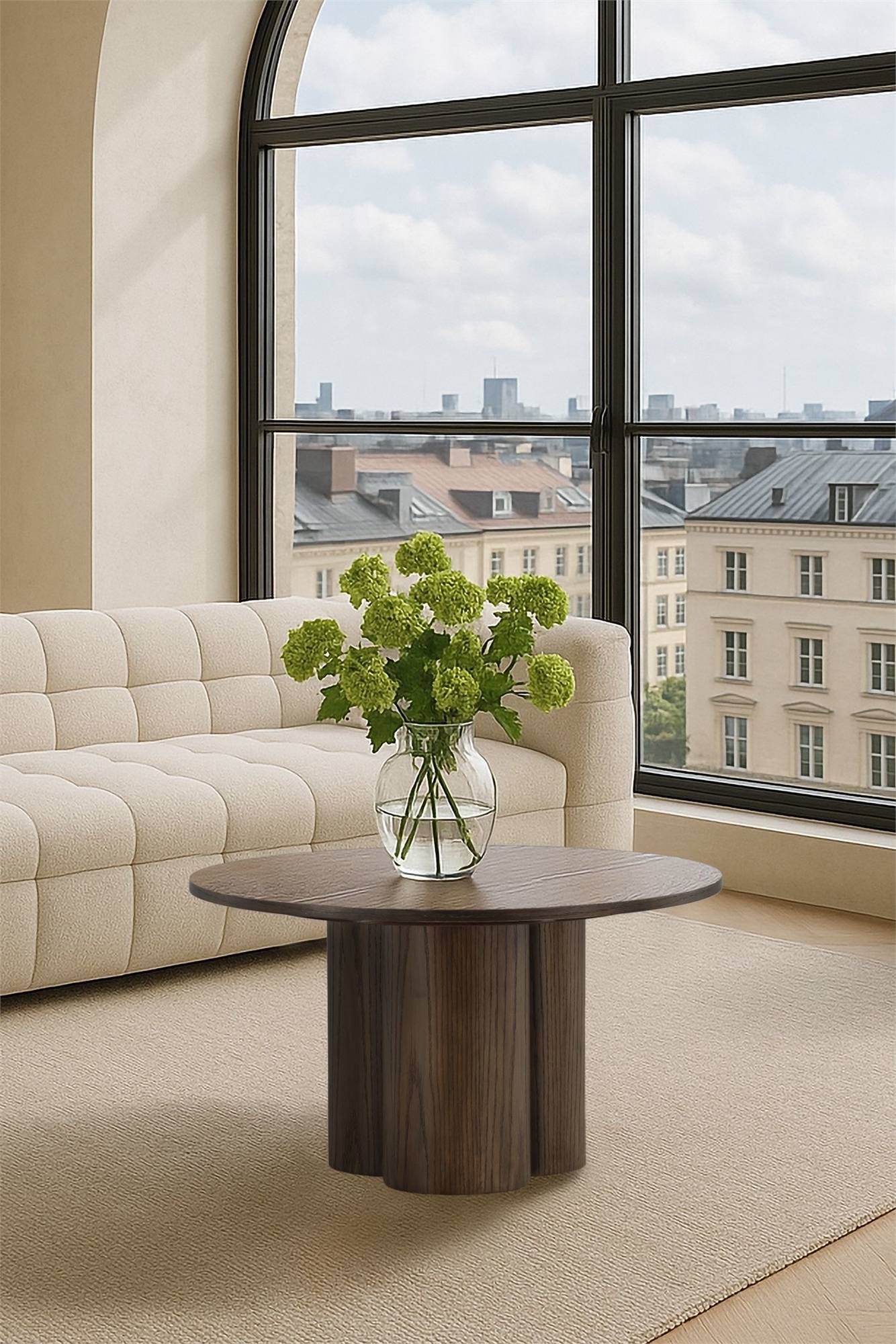 Поднимите дизайн интерьера на новый уровень с помощью журнального столика, который покоряет модные хит-парады! Журнальный столик Olivia из шпонированного МДФ имеет цилиндрическую форму, которая придает столику элегантный вид. Круглая столешница отделана шпоном, а три цилиндрические ножки соединяются в центре под ней. Столик можно использовать и как журнальный, и как сервант, а его удобные размеры позволяют легко размещать и перемещать его по дому. Перед вами современный сервант, который поражает мягкостью форм, стильным дизайном и модным цветом! Высота: 45 см Диаметр: 80 см