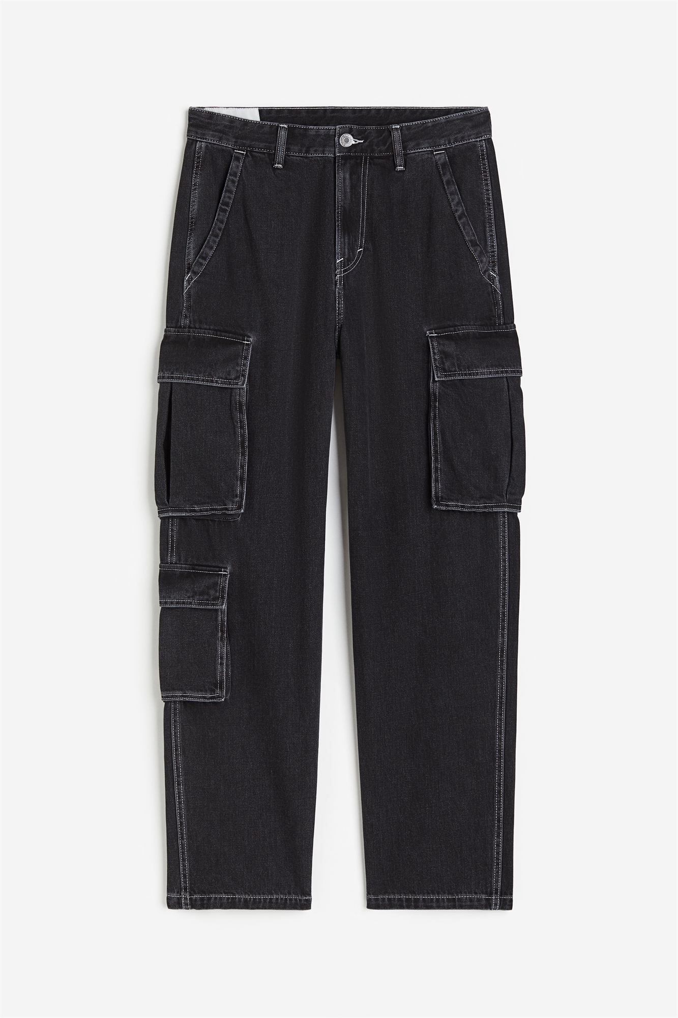 Свободные брюки-карго из жесткого хлопкового денима. Зауженный пояс, ширинка на молнии, диагональные боковые карманы и прямые ноги. Накладной карман на каждой штанине и дополнительный карман на одной штанине.