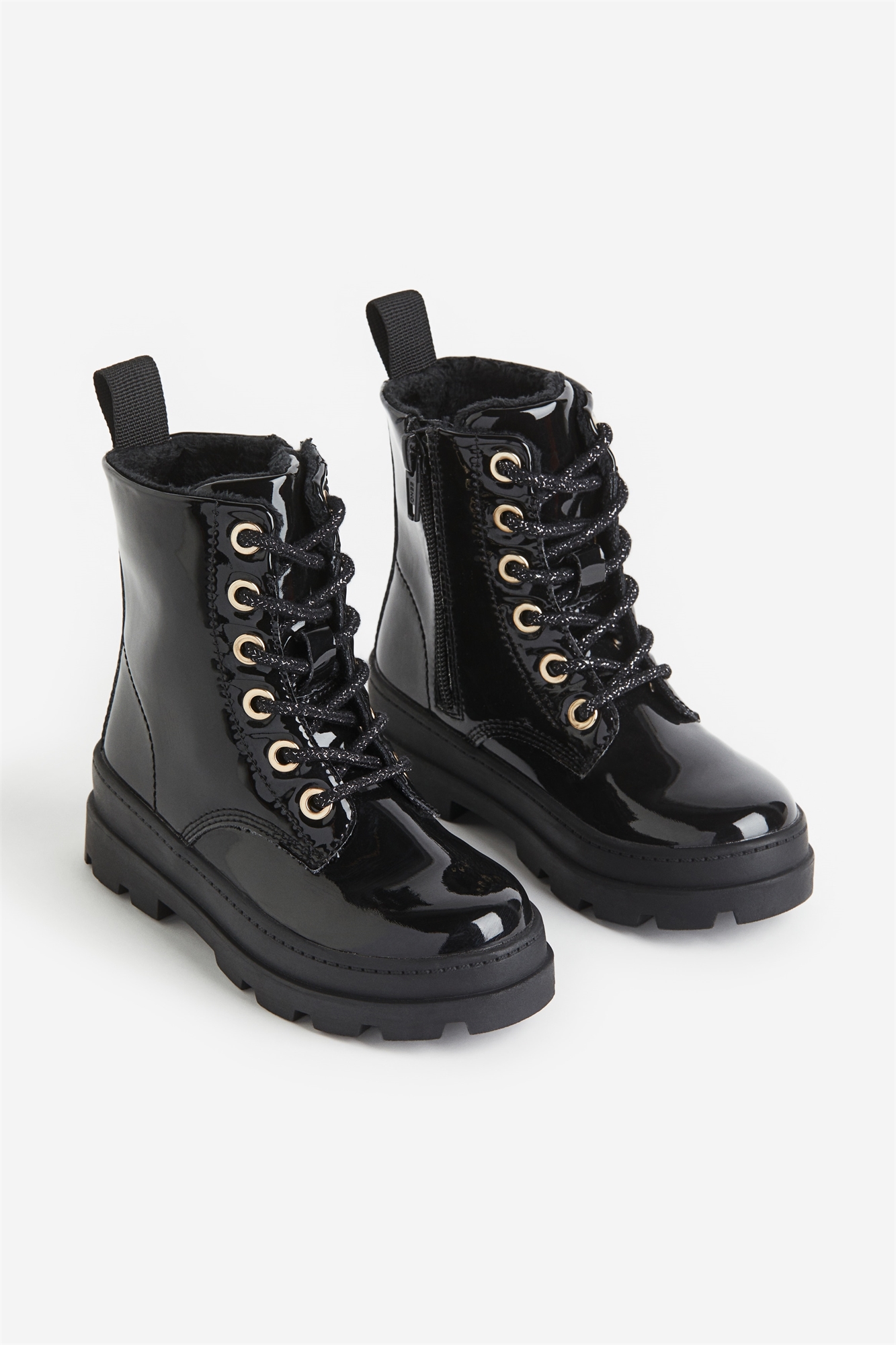 Утепленные ботинки на подкладке с голенищем высотой до щиколотки, шнуровкой спереди, застежкой-молнией с одной стороны и петлей сзади. Мягкая велюровая подкладка и стелька из технической пены Cellfit™ для дополнительного комфорта. Мохнатая подошва с узором. Высота подошвы 4 см.