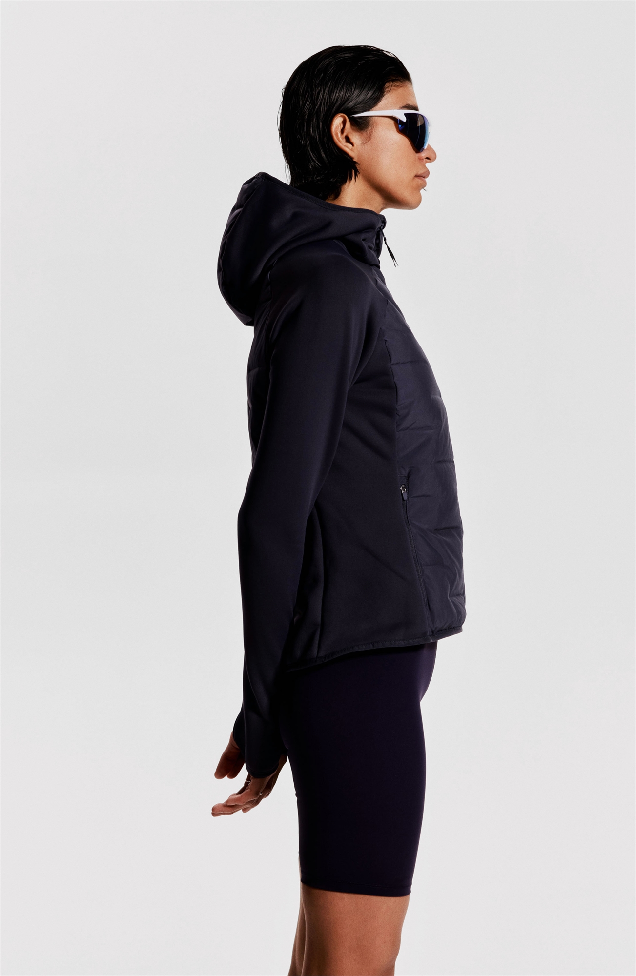 Гибридная куртка из эластичной ткани и мягких панелей из функциональной ткани ThermoMove™, которая согреет вас при понижении температуры. Регулярный крой с капюшоном на подкладке и застежкой-молнией спереди с защитой подбородка от натирания. Удлиненные рукава реглан с отверстием для большого пальца на манжетах, открытые внутренние карманы и боковые карманы на молнии для безопасного хранения ценных вещей. Эластичная отделка капюшона, манжет и подола. Куртка имеет наполнитель из пуха и пера. На подкладке.