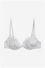 Бюстгальтер из кружева и джерси с регулируемыми бретелями и мягкими чашечками с заниженной посадкой, которые придают форму бюсту и обеспечивают хорошую поддержку. Застежка на крючки и глазки сзади.