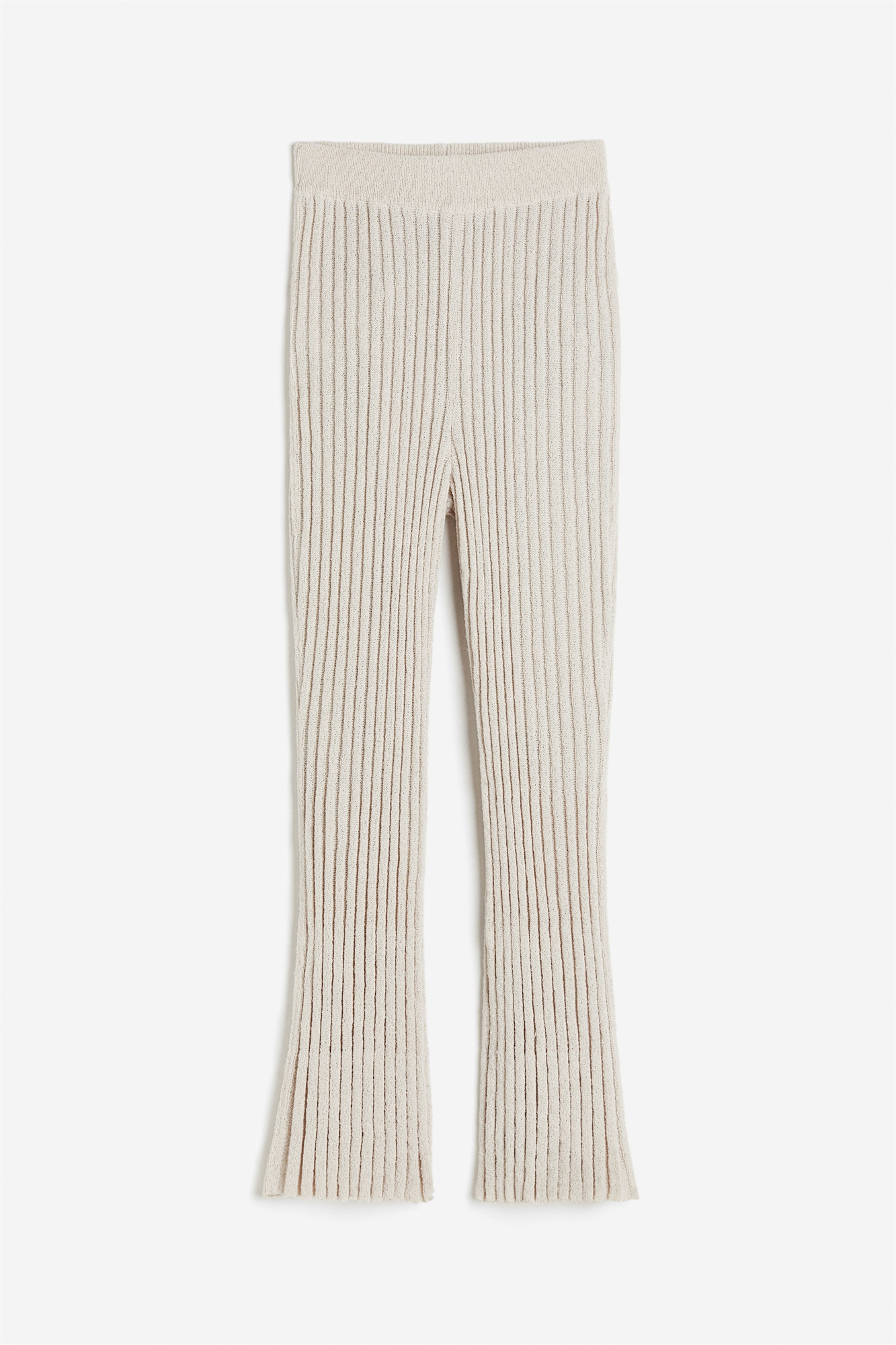 Трикотажные брюки с резинкой на поясе и расклешенными краями.