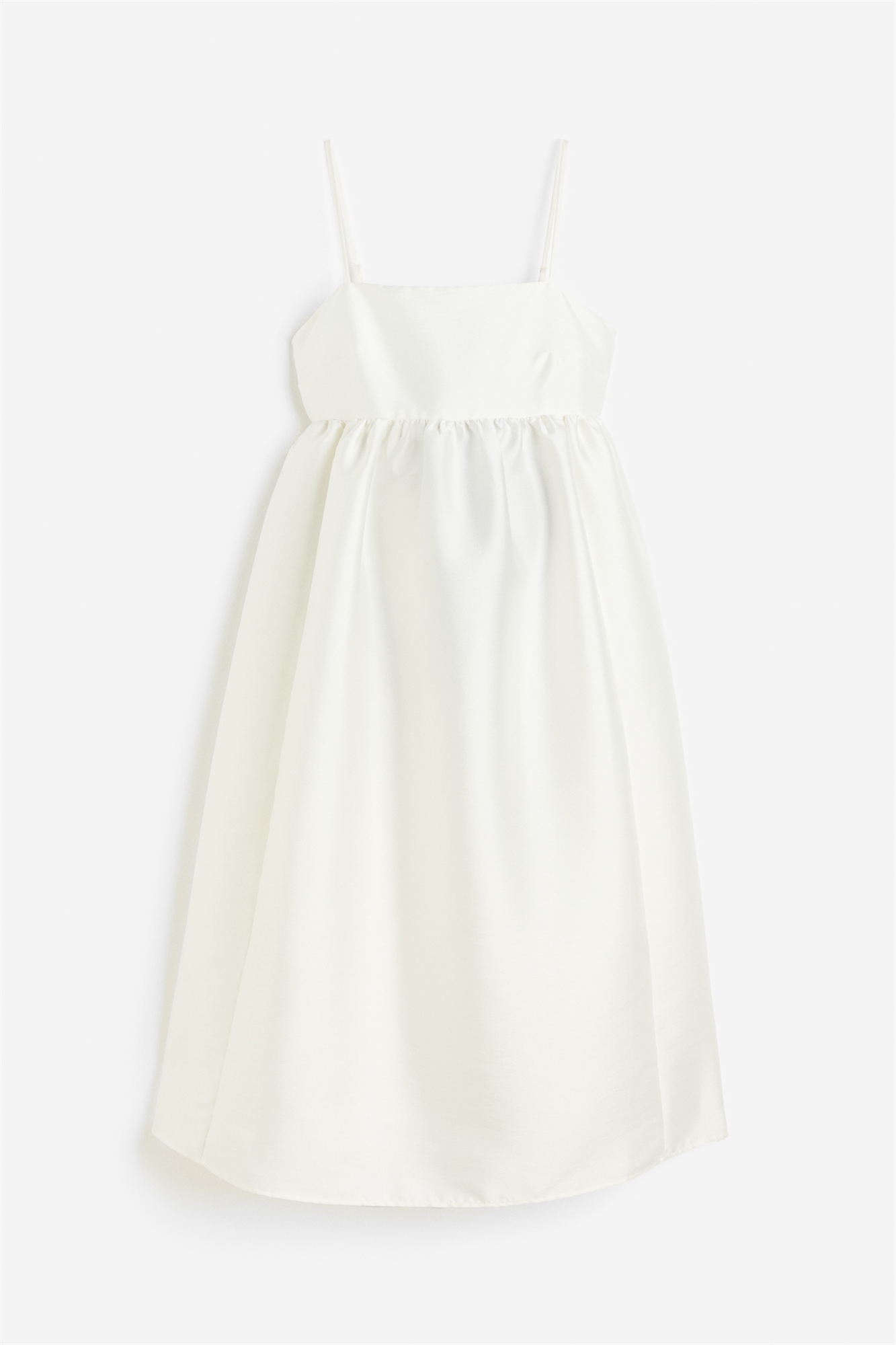 Платье длиной до колена из тканого материала с легким блеском. Квадратный вырез и узкие регулируемые бретели. Открытая часть сзади с двумя эластичными горизонтальными бретелями. Сборчатый шов под бюстом с эластичной вставкой сзади и расклешенная, объемная юбка. Верхняя часть на подкладке.