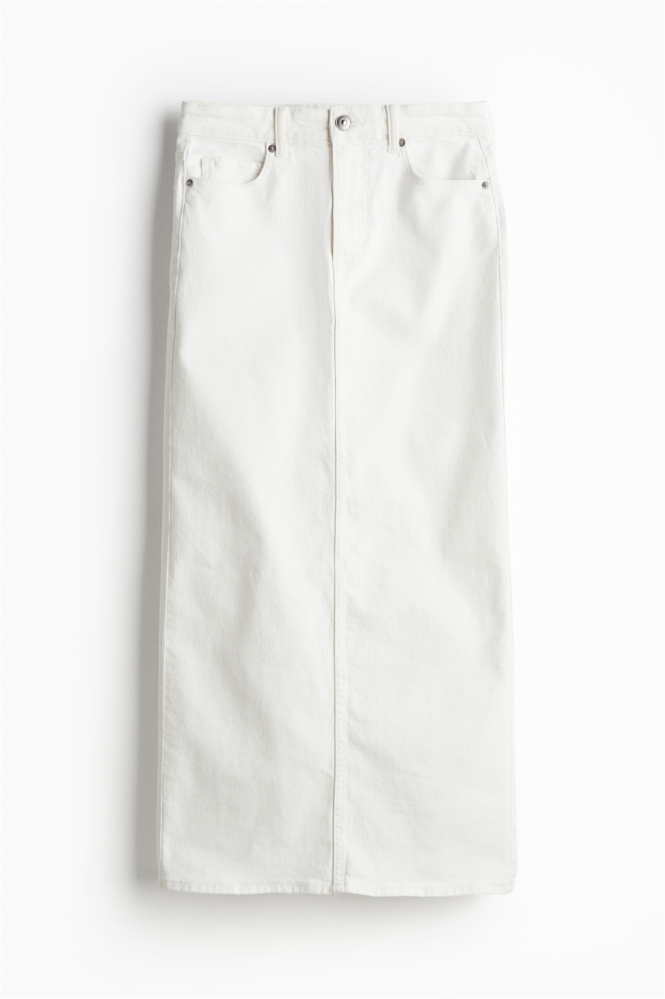 Юбка длиной до щиколотки с 5 карманами из слегка эластичного хлопкового денима, застежка на молнию и пуговицу, высокий разрез сзади.