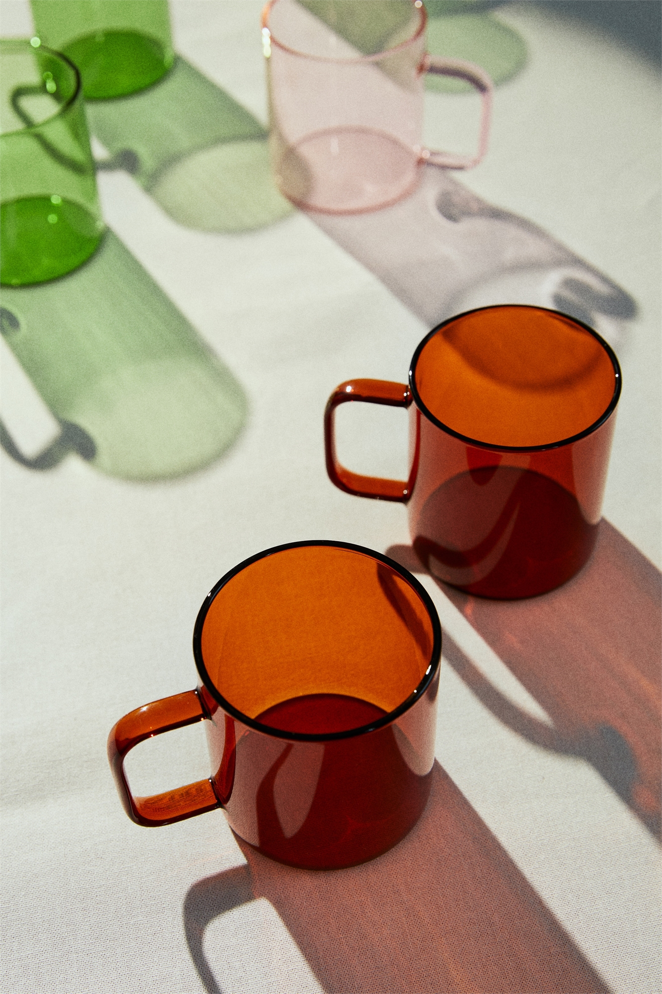 Набор из двух кружек из стекла с ручкой. Объем 330 мл. Диаметр 8 см. Высота 9 см.