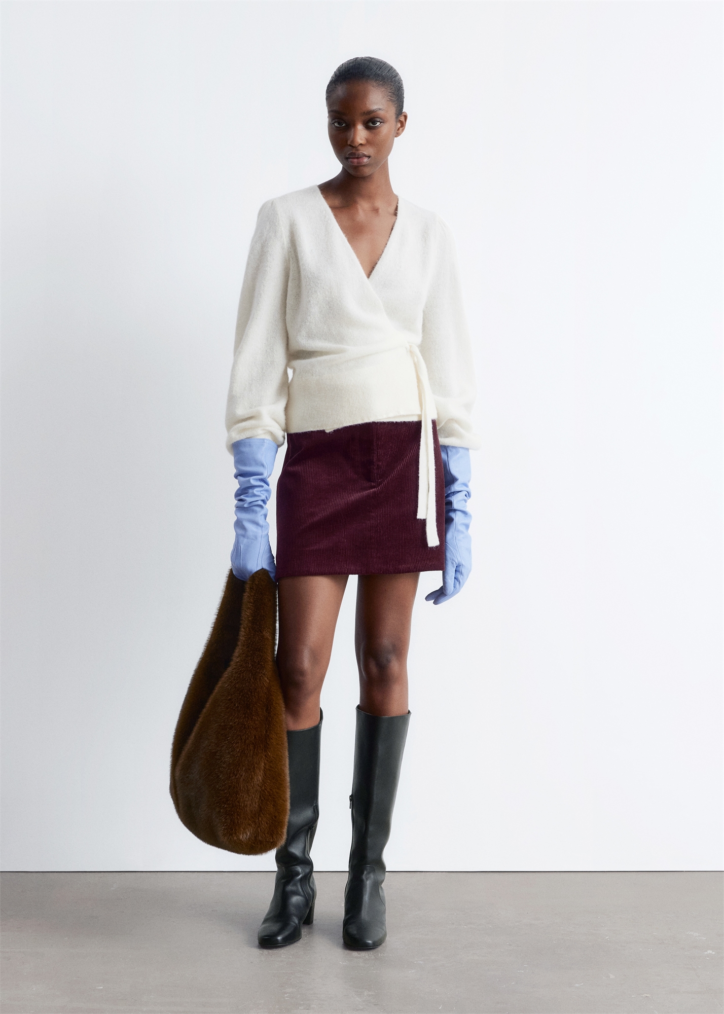 Вязаный из смеси мериносовой шерсти и мохера, этот кардиган с завязками, длинными пышными рукавами, ребристыми манжетами и подолом. 39% шерсти RWS TE-00047206 32% мохера RMS TE-00047206 Длина джемпера: 56 см / 22" (размер S)