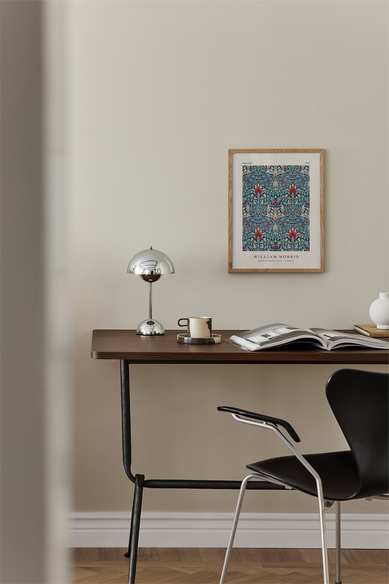 Уильям Моррис - известный дизайнер и ремесленник, работавший с 1861 по 1896 год. Он был ключевой фигурой в Движении искусств и ремесел, пропагандируя методы ручной работы. Сочетая в себе любовь к прошлому и природе, многие из его дизайнов черпали вдохновение в средневековых гербариях и зоологических мотивах. Классические и очень декоративные мотивы Морриса популярны и по сей день и часто используются для оформления современных домов и помещений.