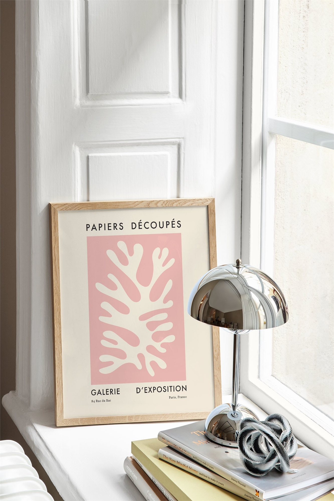 Графическая иллюстрация бежевой вырезанной формы на розовом фоне с бежевой каймой. Эти смелые и абстрактные формы вдохновлены авангардным художественным направлением фовизм, процветавшим во Франции в начале XX века.