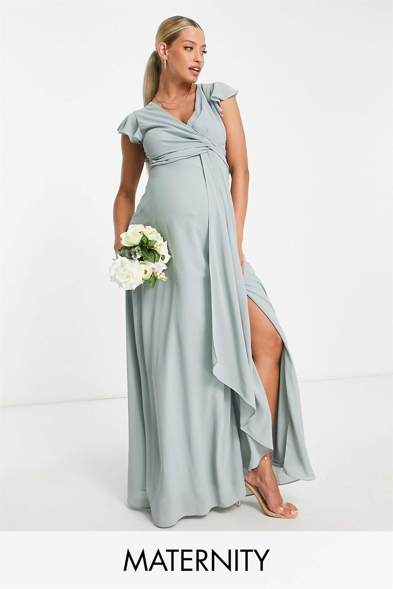 Макси-платье для подружки невесты с воланами и рукавами-крылышками